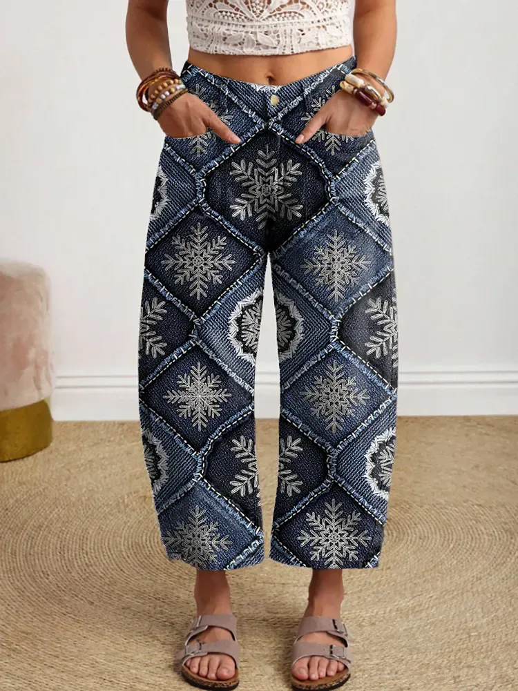 Ethnicity Geometry Patchwork Snowflake Women's Art Print Jeans