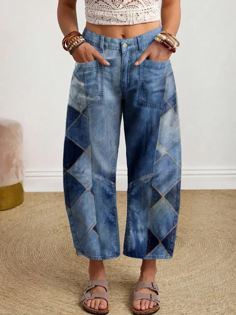 Ethnicity Patchwork Geometry Women's Art Print Jeans
