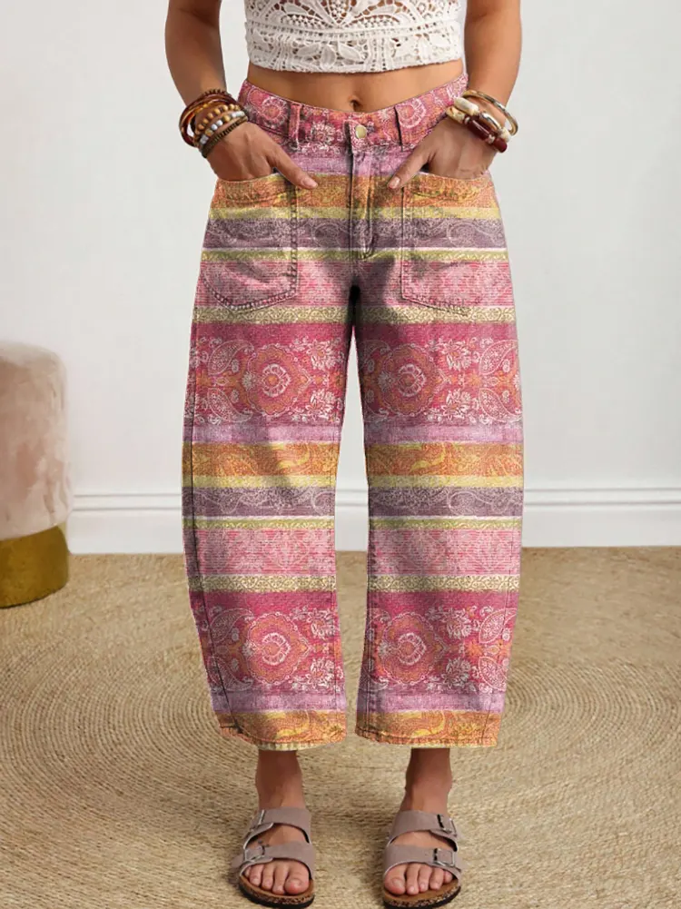 Ethnicity Pink Flowers Stripes Women's Art Print Jeans