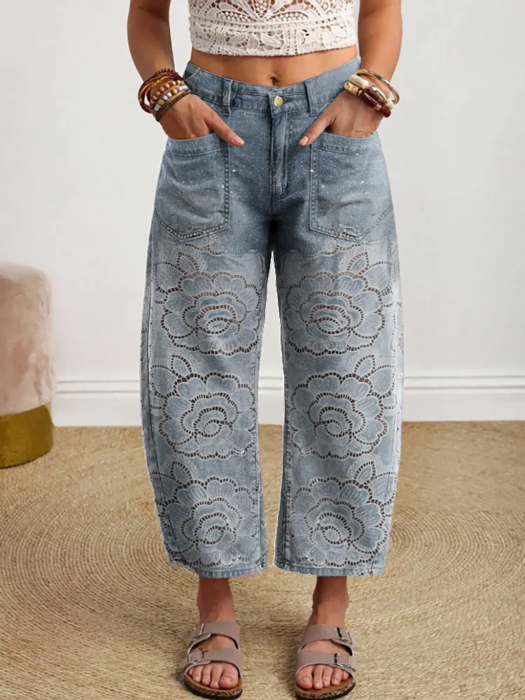 Ethnicity Texture Flowers Women's Art Print Jeans