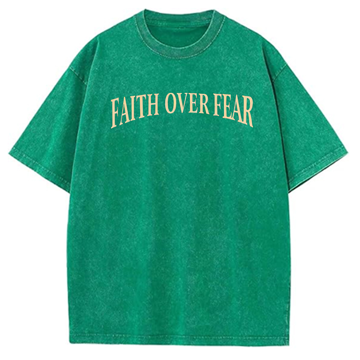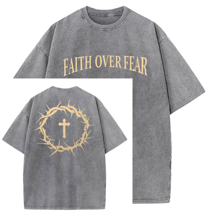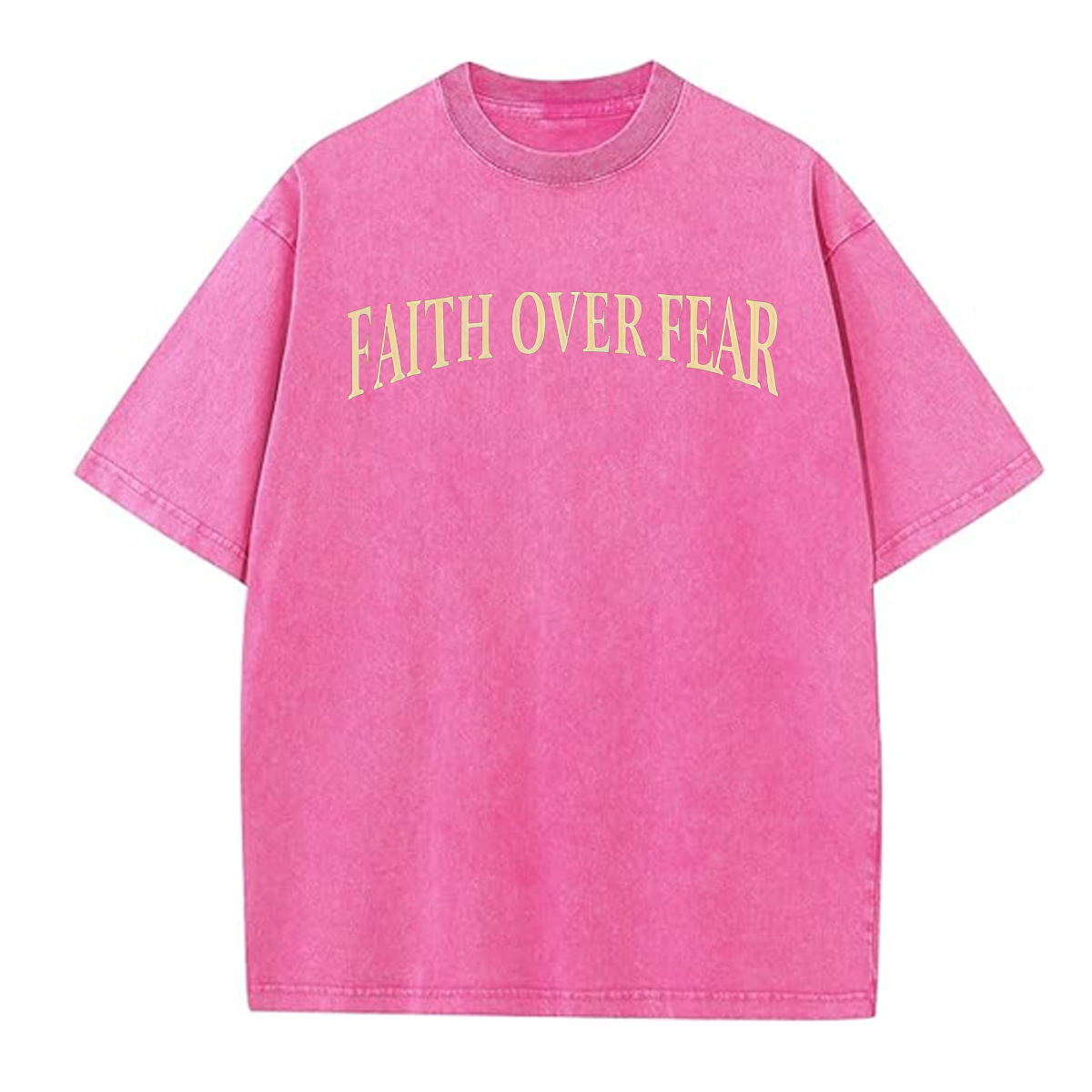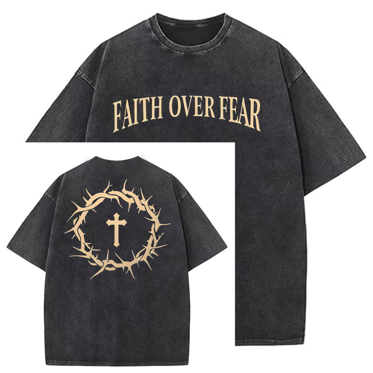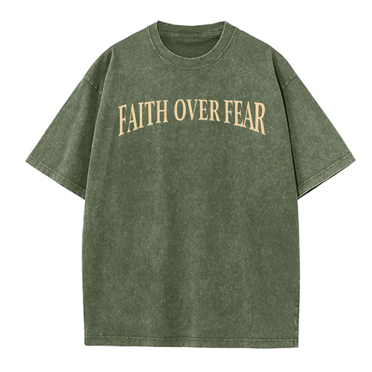 Faith Over Fear Pattern Washing And Aging Process Crew Neck T-Shirt
