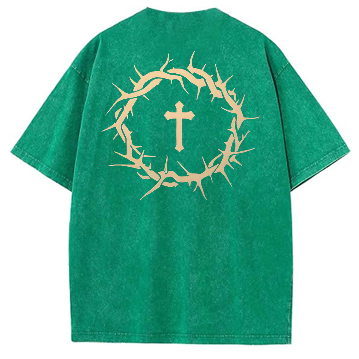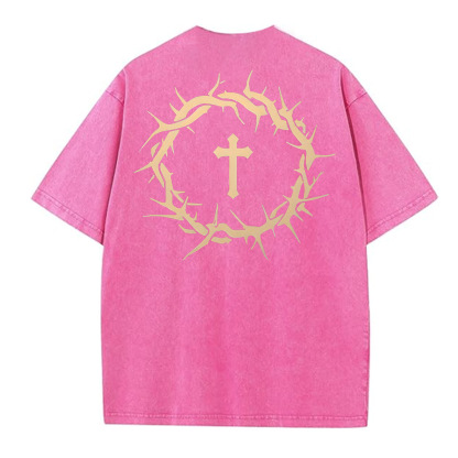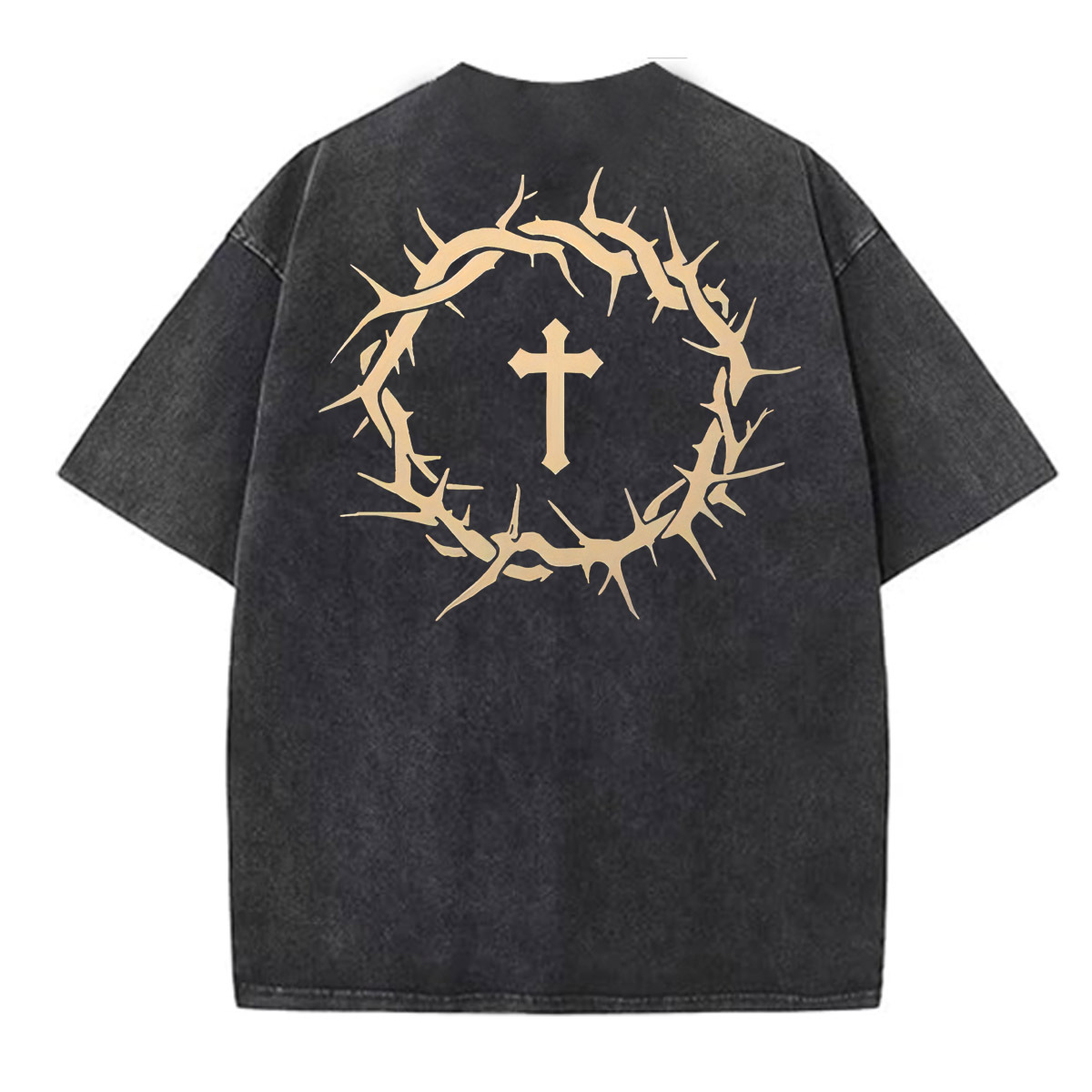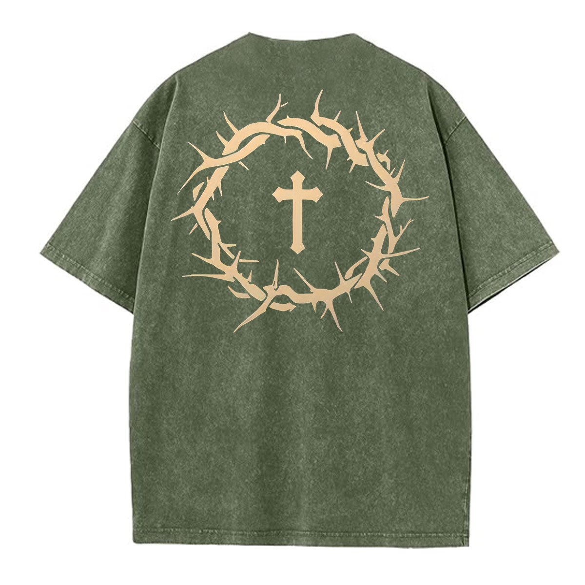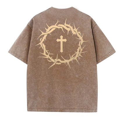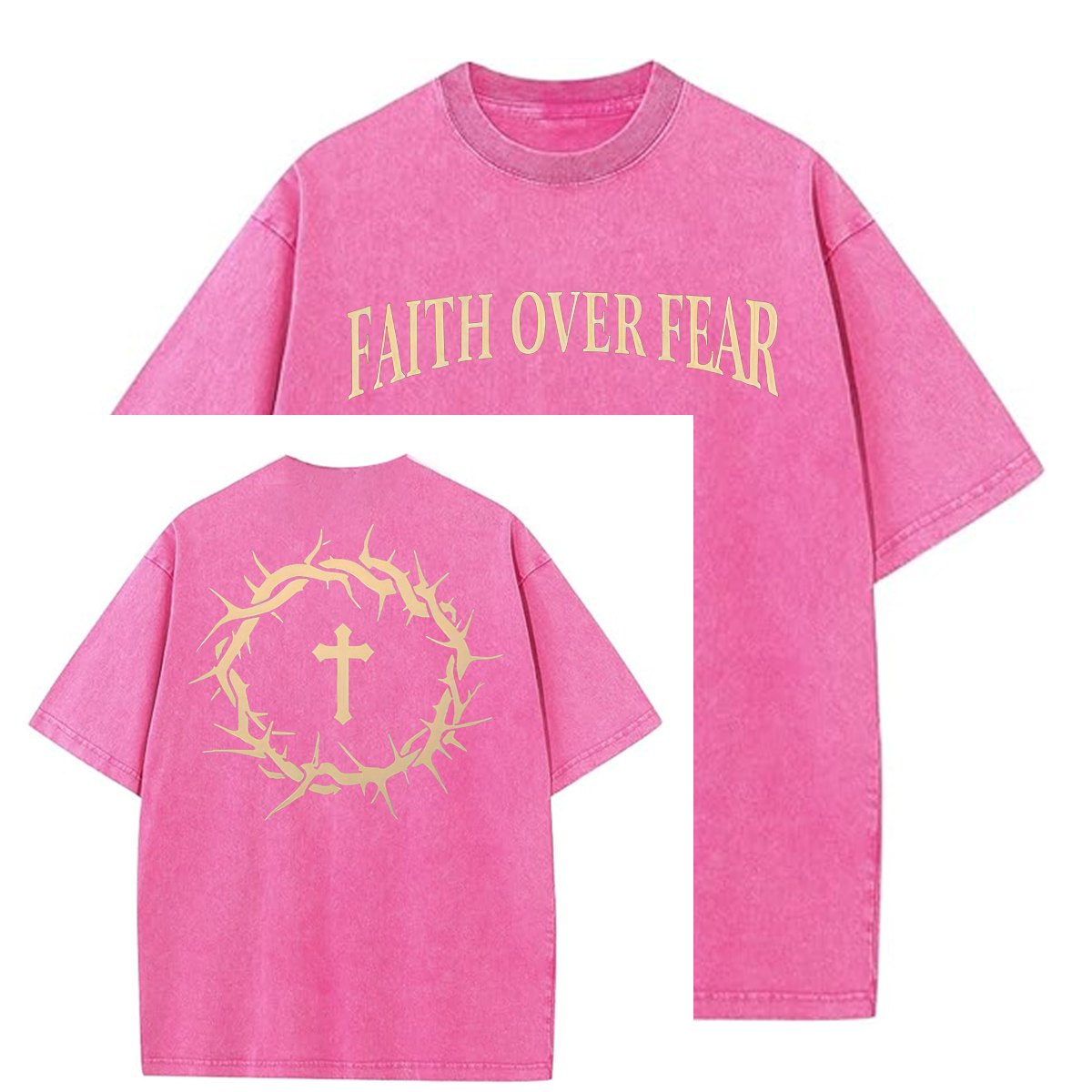 Faith Over Fear Pattern Washing And Aging Process Crew Neck T-Shirt