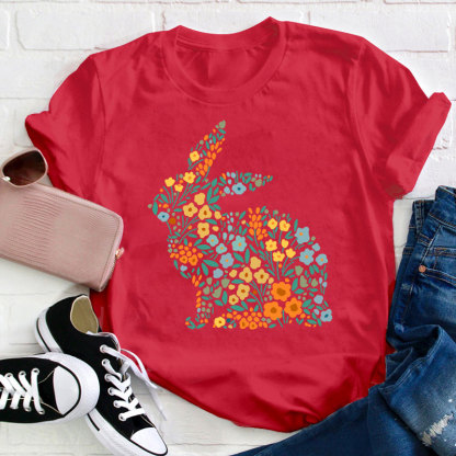 Floral Bunny Teacher T-Shirt