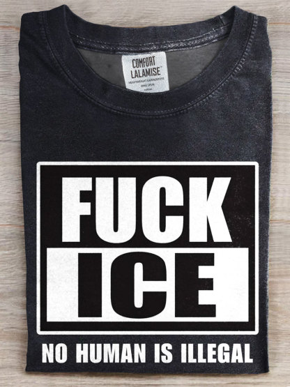 FUCK ICE Print Casual T-shirt