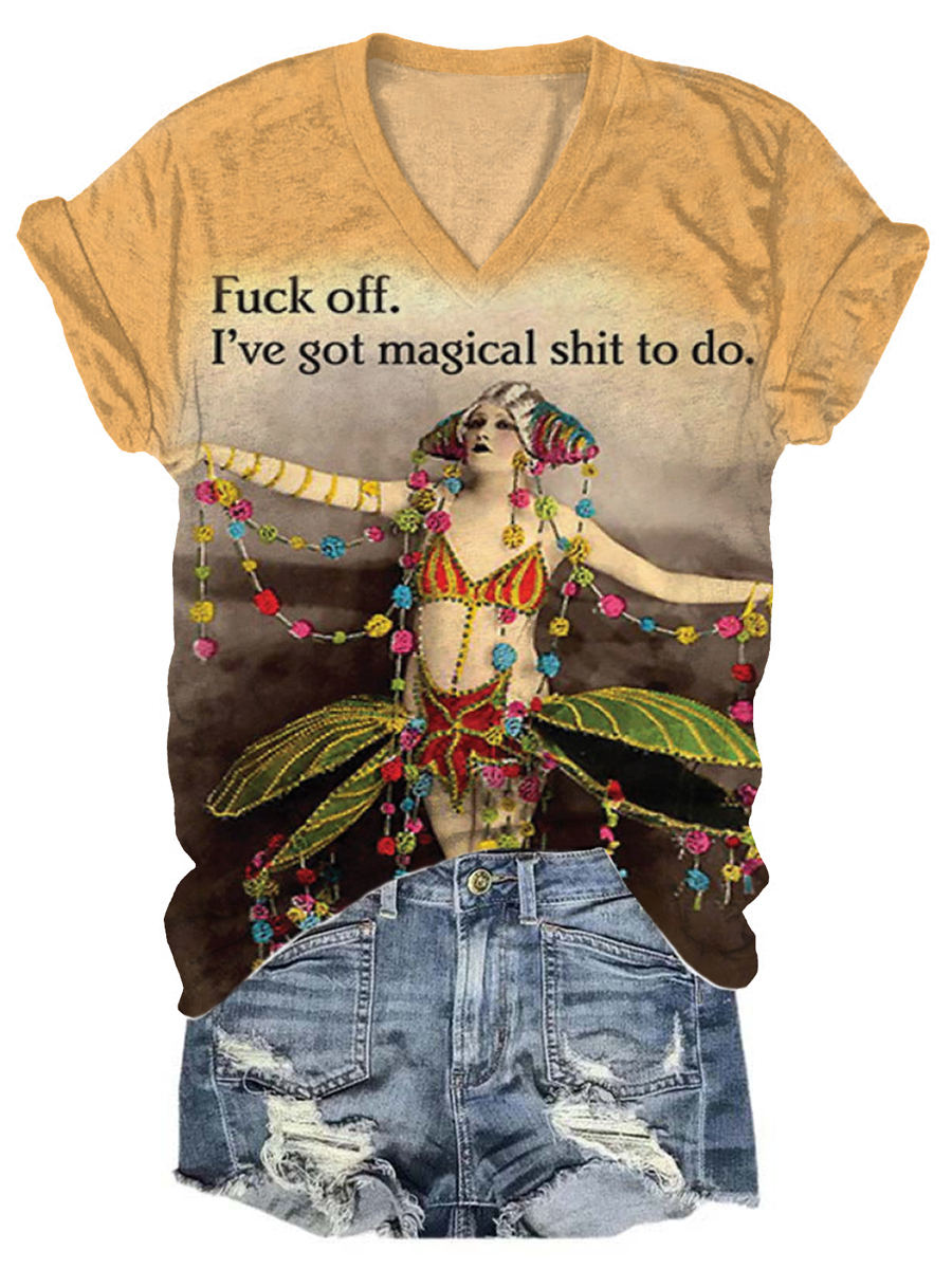 Fuck Off I've Got Magical Shit To Do Print V-neck Casual T-Shirt