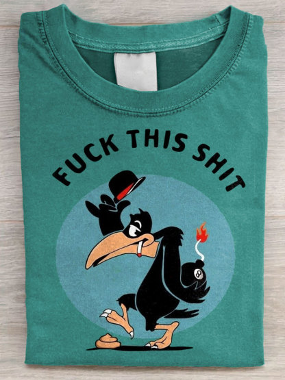 Fuck This Shit Funny Crow Art Print Casual Short Sleeve T-shirt