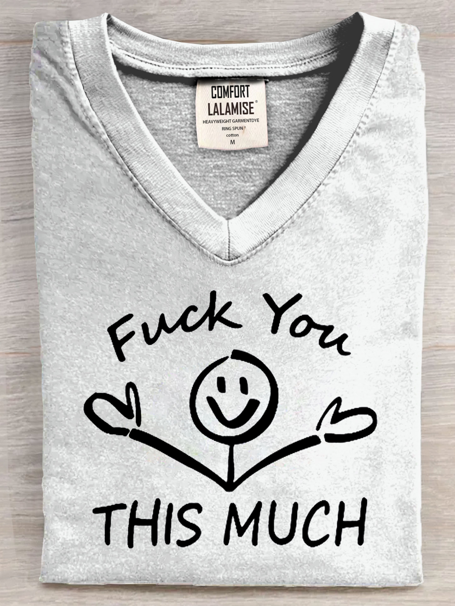Fuck You This Much Art Print V-neck Casual T-Shirt