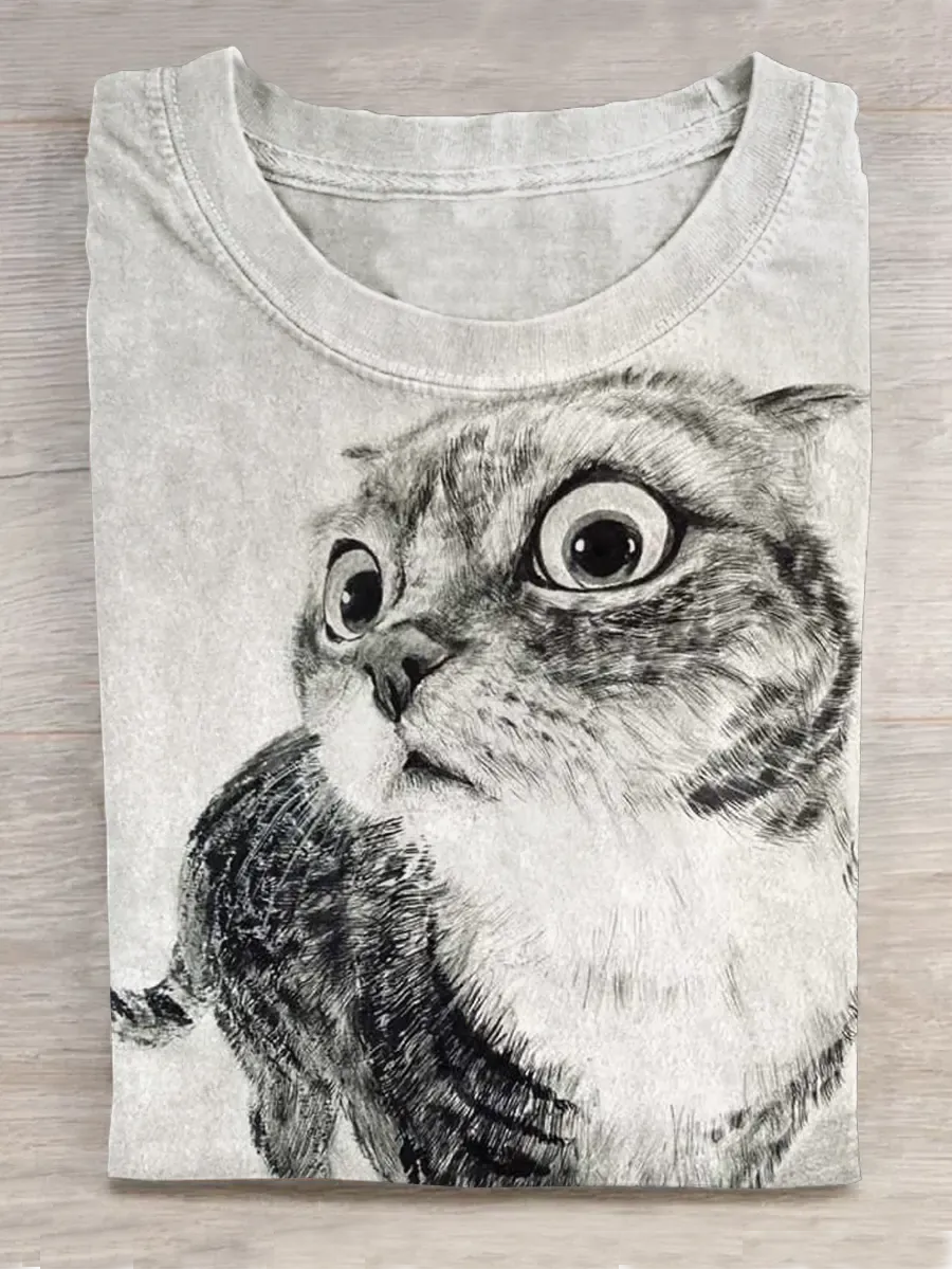 Fun Cat Art Print Casual Cotton Short Sleeve T-shirt