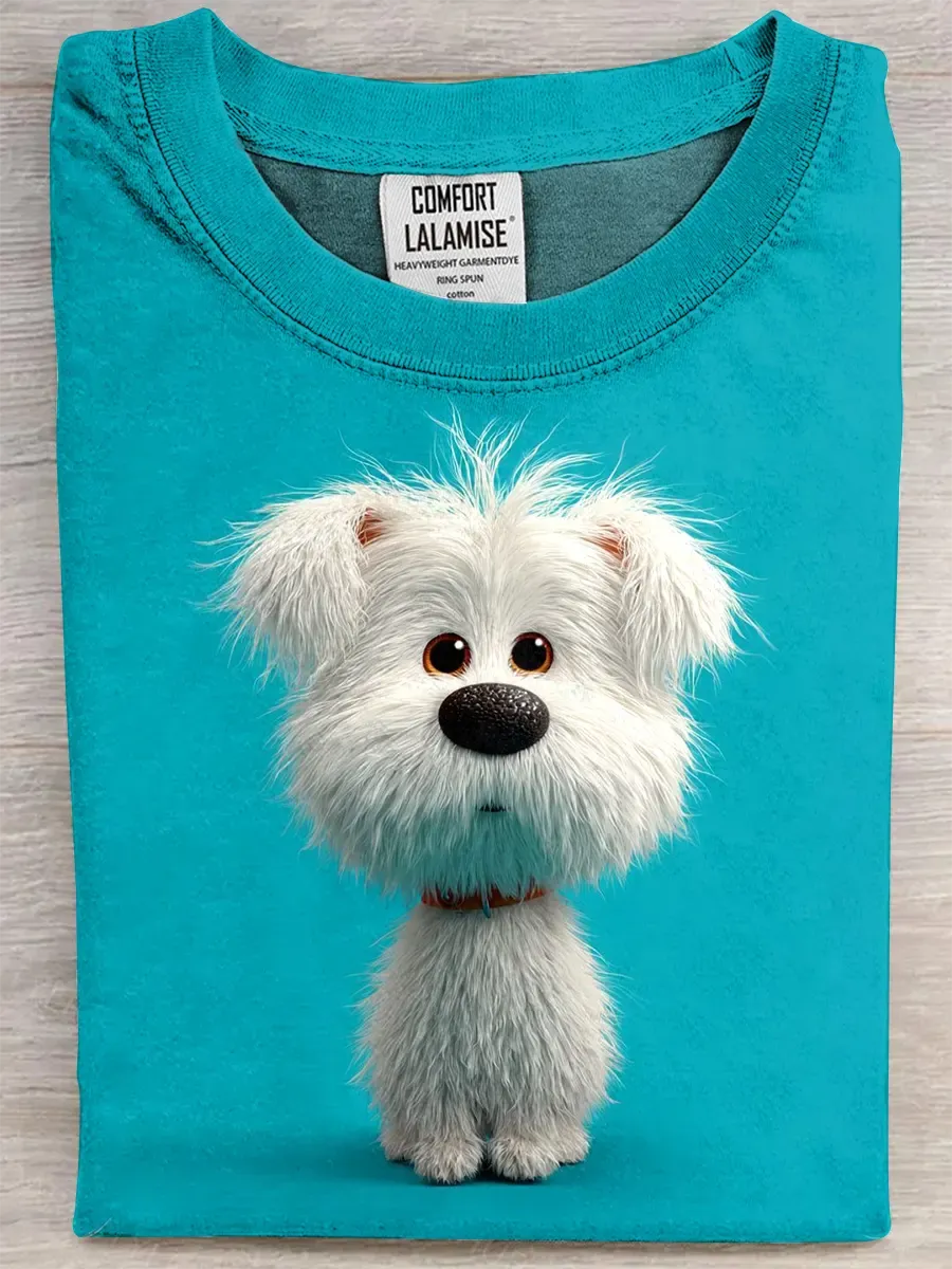 Fun Cute Dog Print Cotton Short Sleeved T-shirt