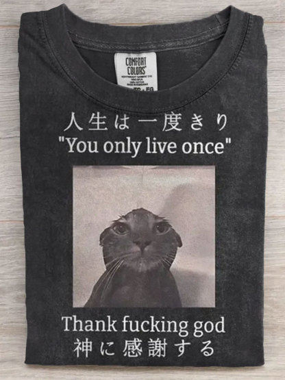 Funny Cat You Only Live Once Thank Fuck God Art Print Casual Short Sleeve T-shirt