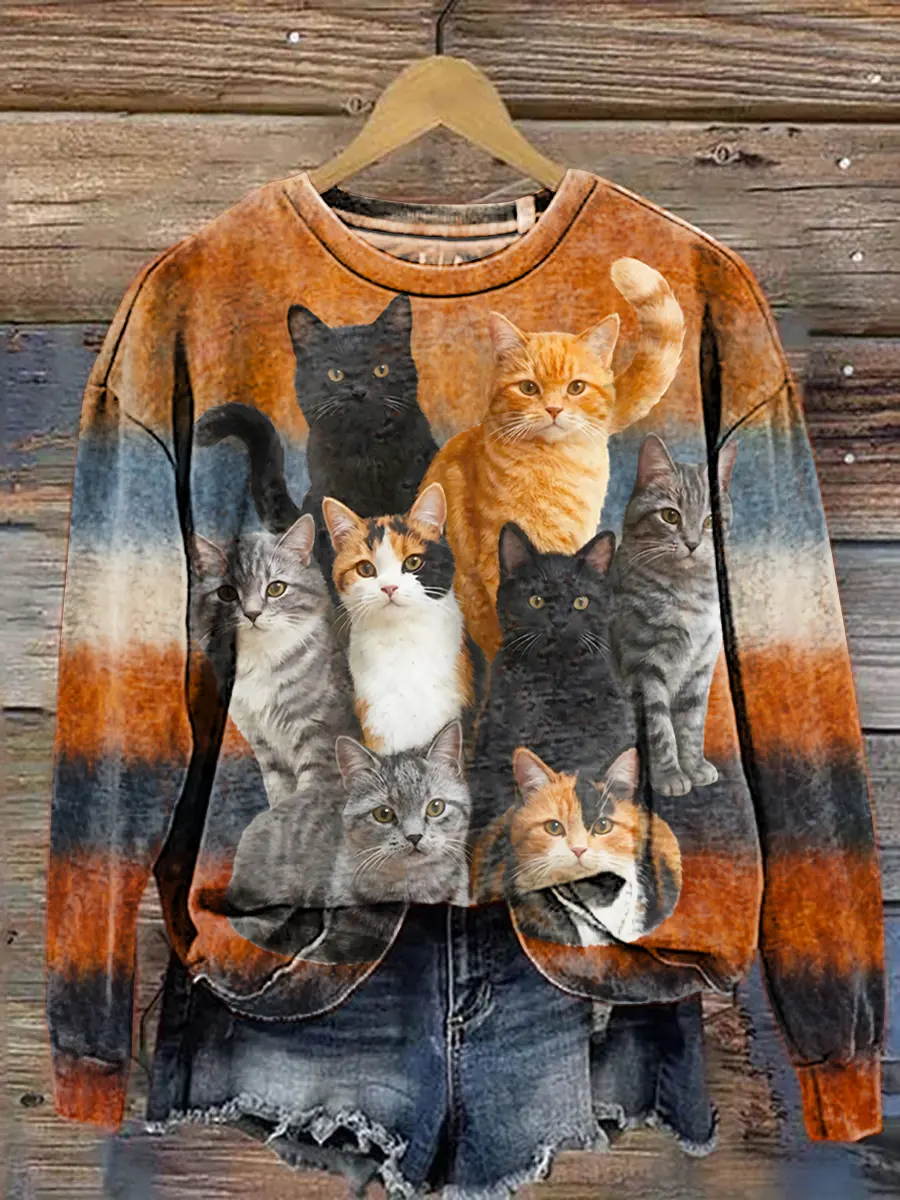 Funny Cats Pattern Art Print Casual Cotton Sweatshirt