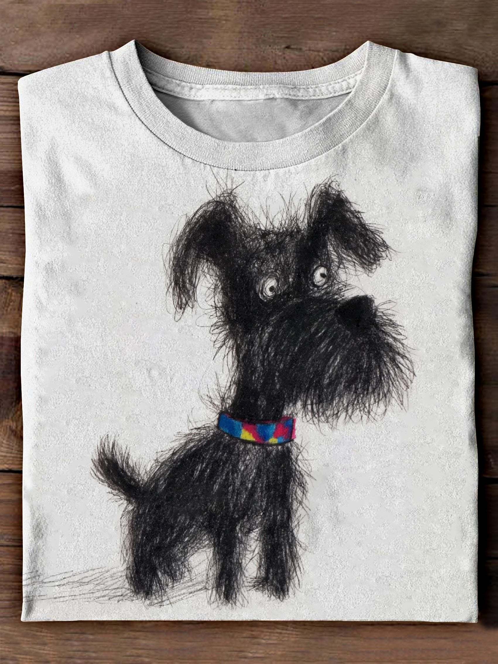 Funny Cute Black Dog Art Print Casual Short Sleeve T-shirt