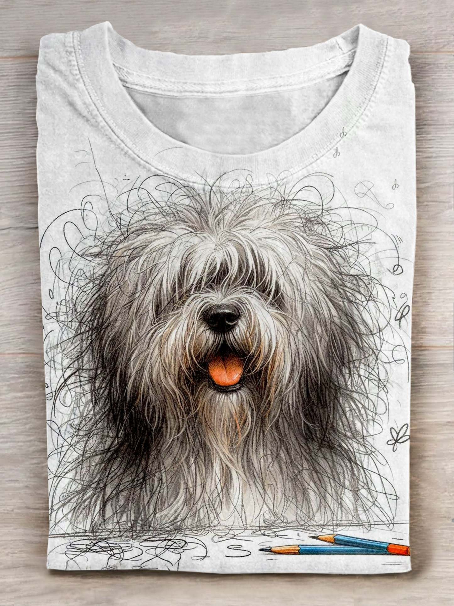 Funny Cute Dog Art Print Casual Short Sleeve T-shirt