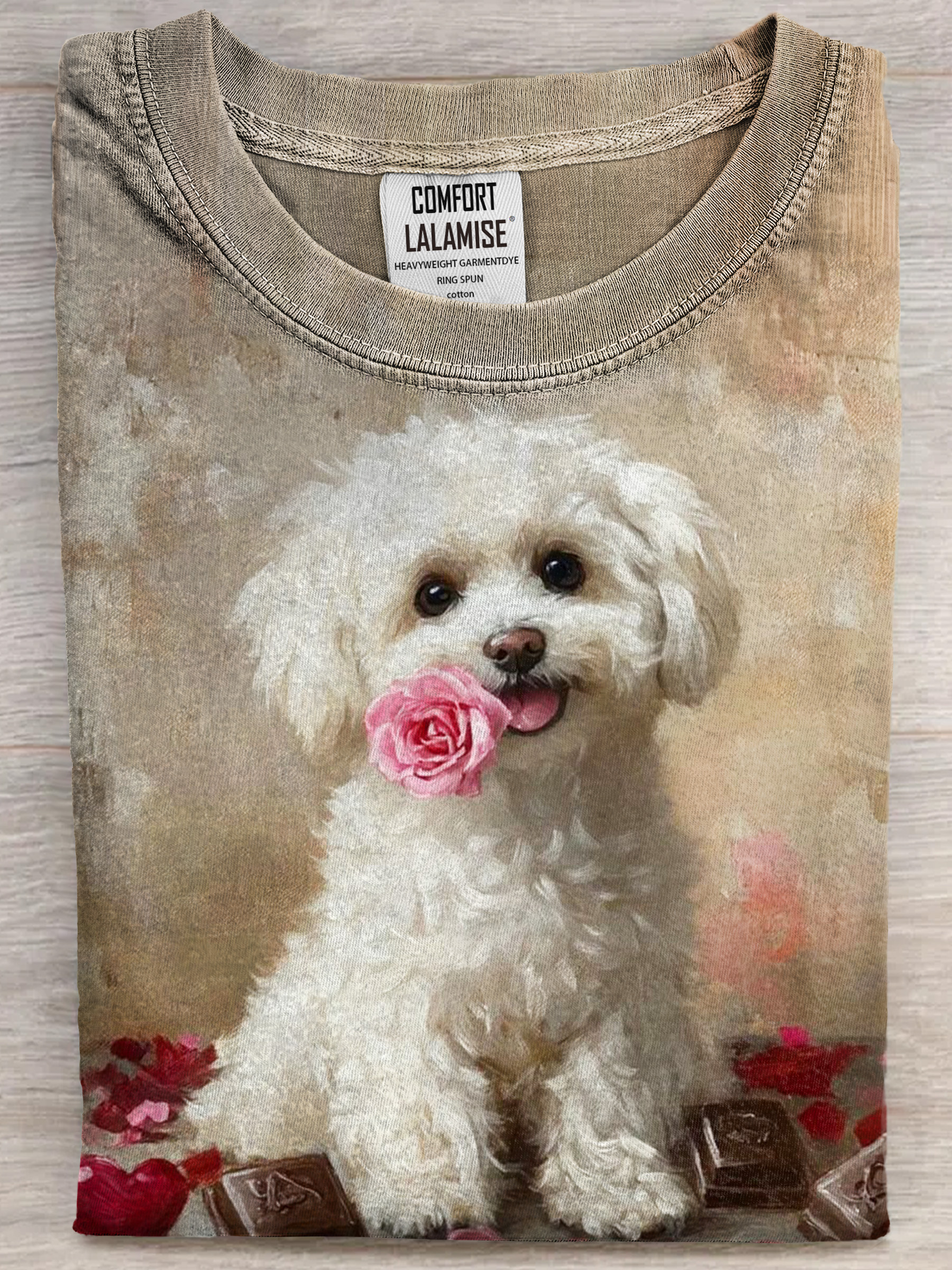 Funny Cute Dog Art Print Casual Short Sleeve T-shirt