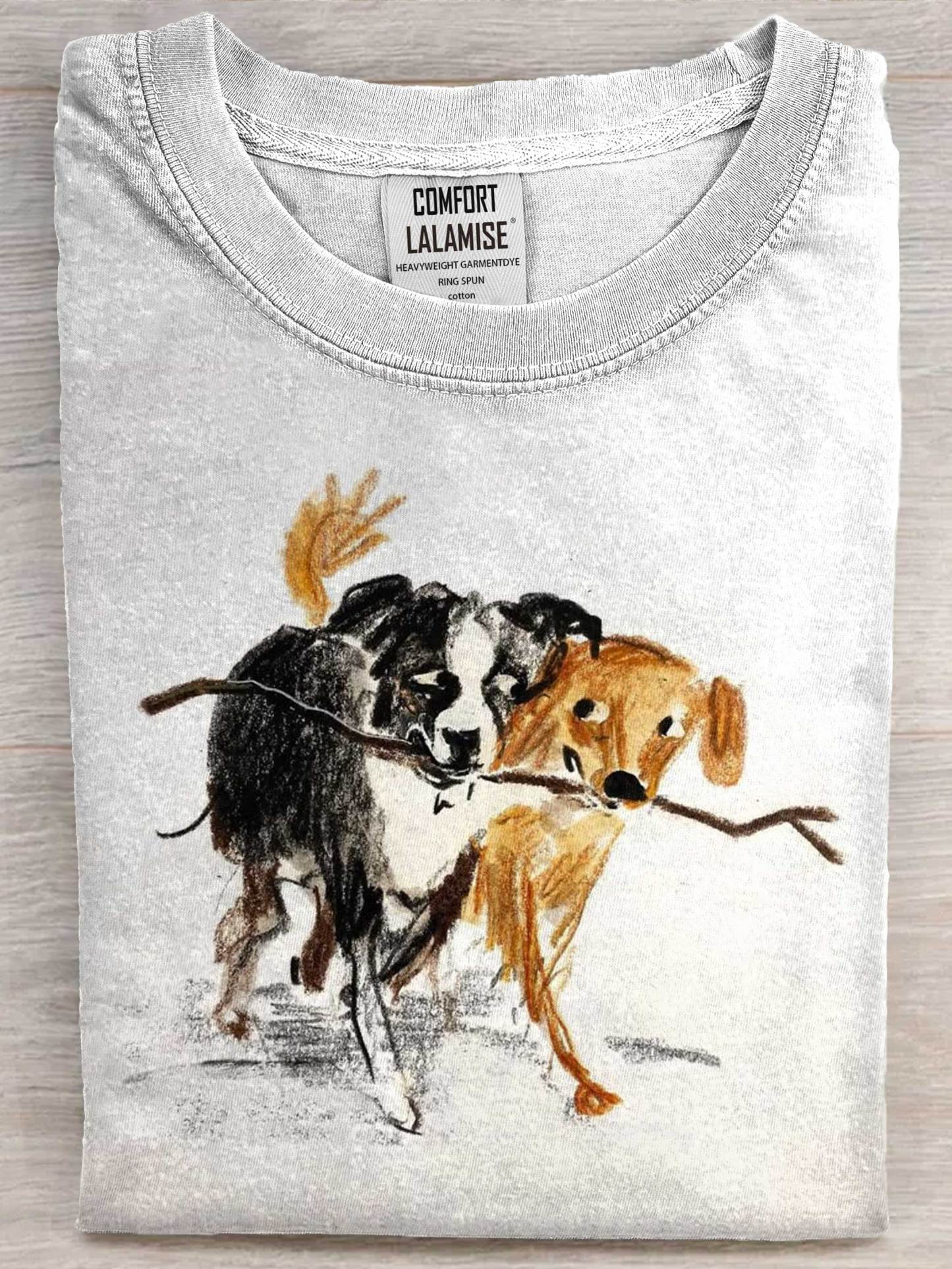 Funny Cute Dogs Casual Art Print Short Sleeve T-shirt