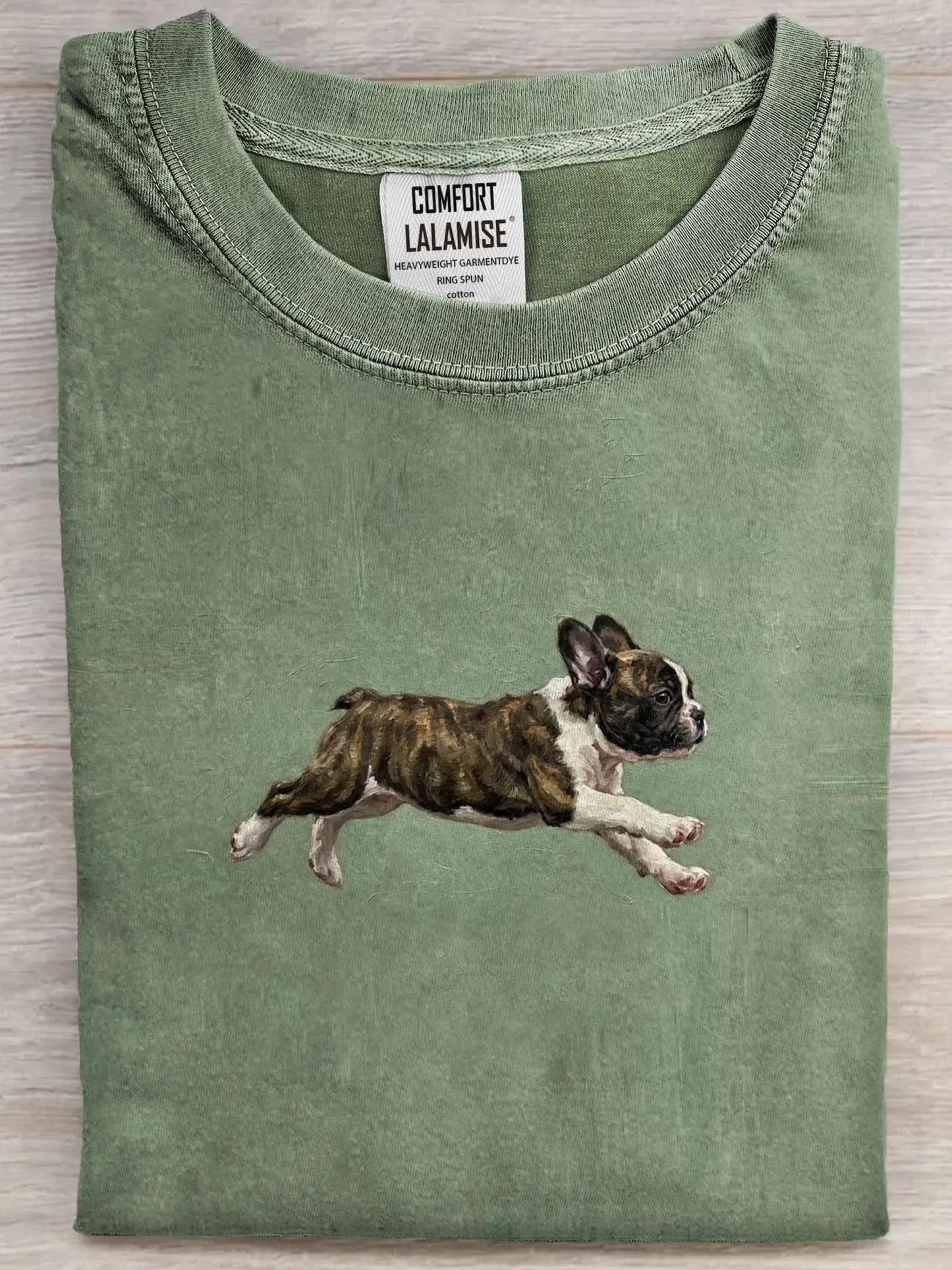 Funny Cute Running Bulldog Puppy Art Print Casual Cotton Short Sleeve T-shirt