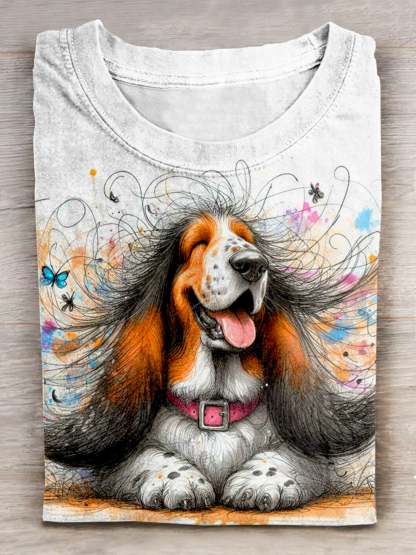 Funny Dog Art Print Casual Short Sleeve T-shirt
