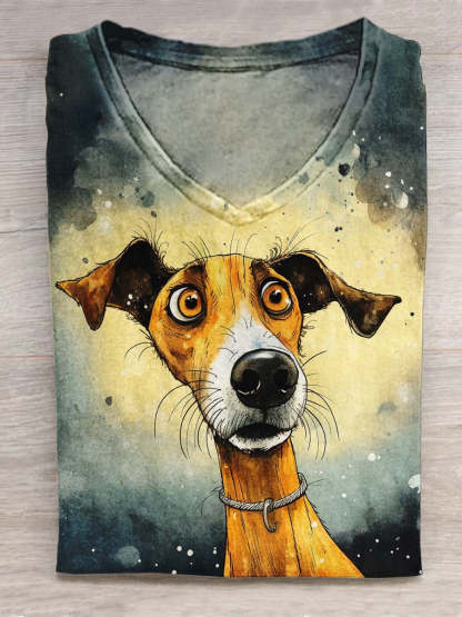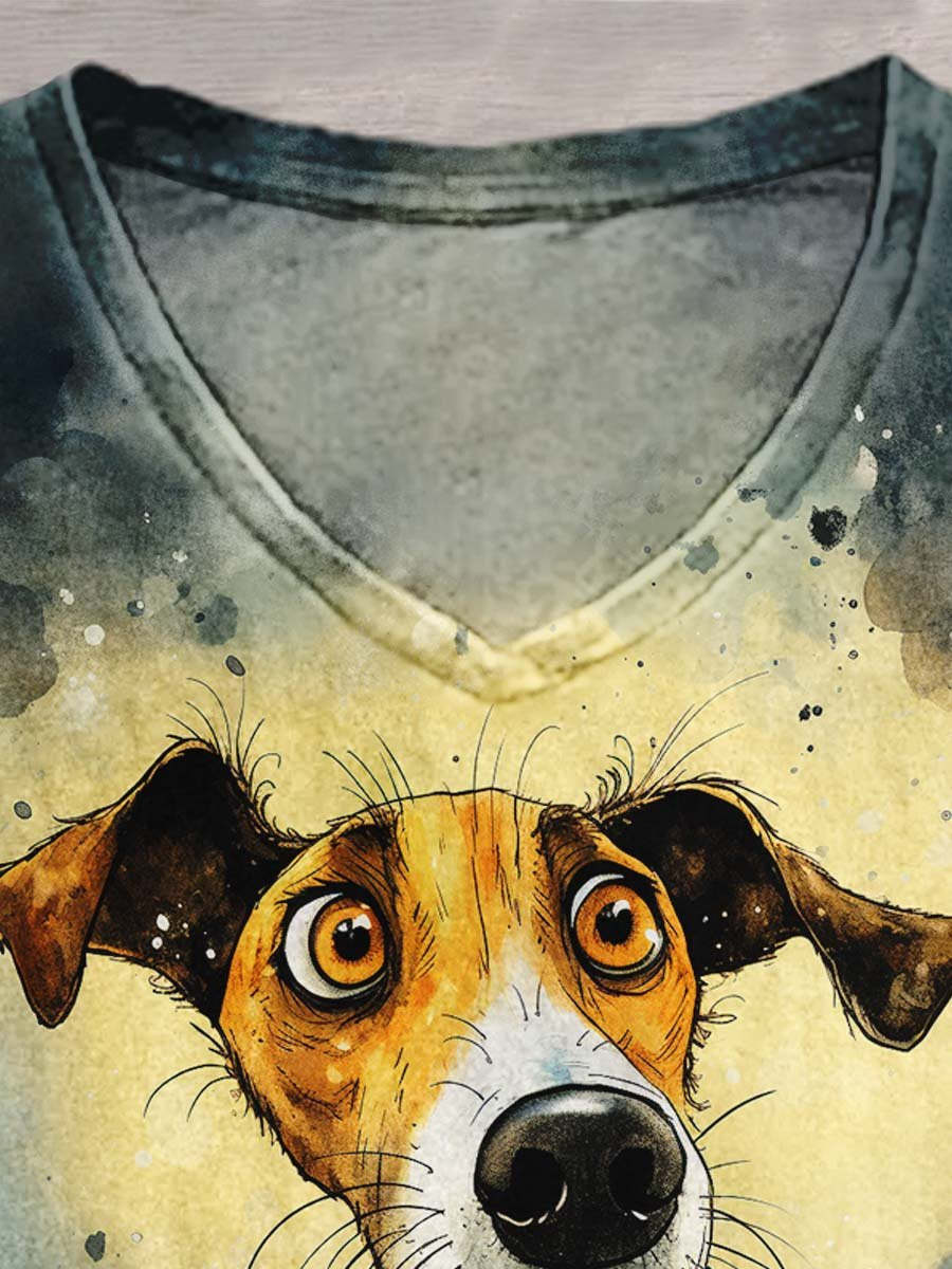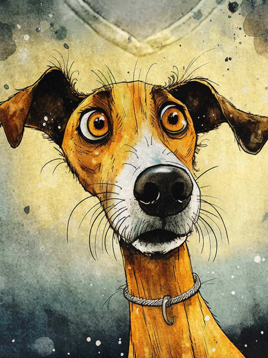 Funny Dog Ink And Watercolor Art Print Casual T-shirt