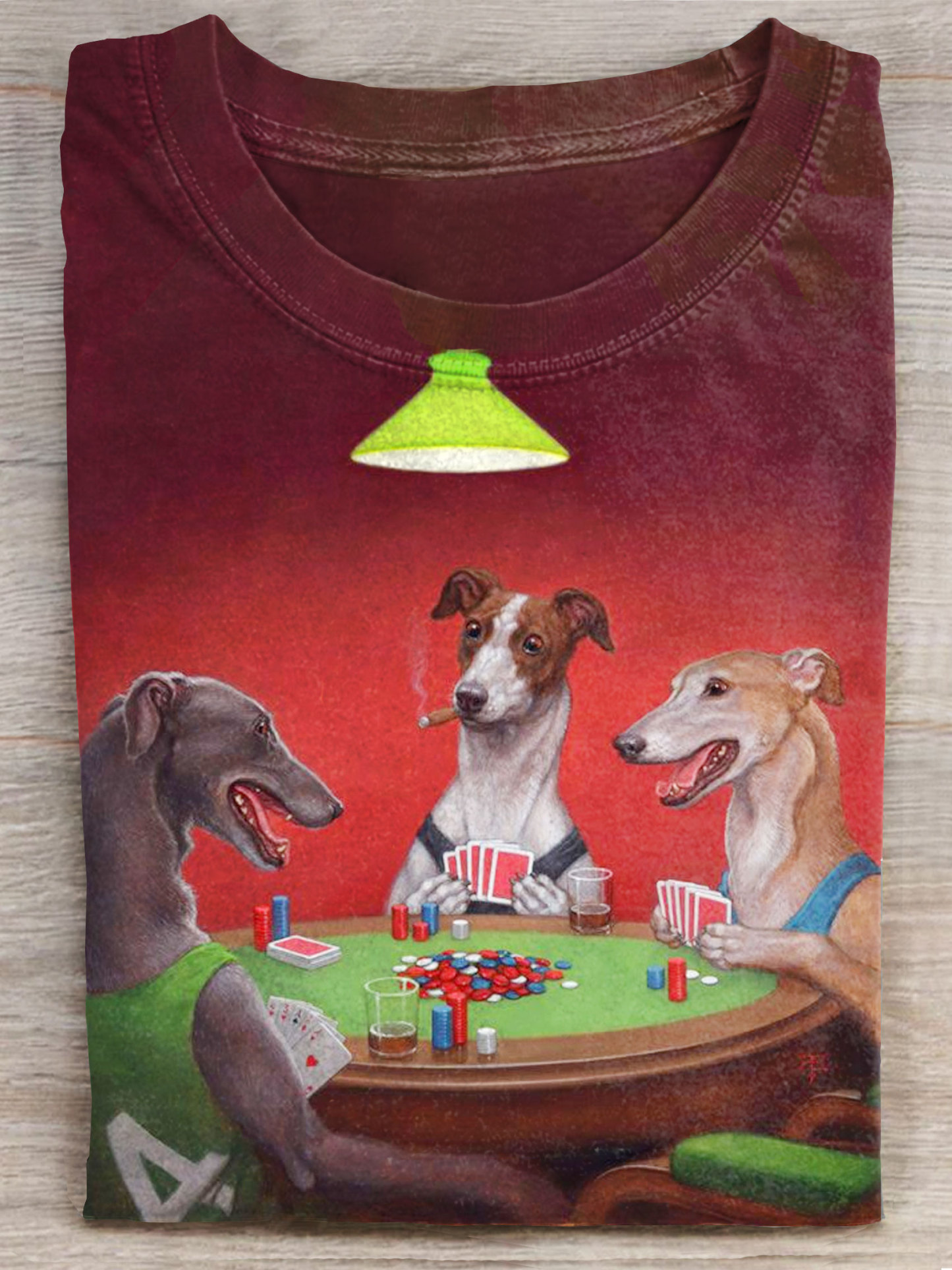 Funny Dog Playing Poker Art Print Casual Short Sleeve T-shirt