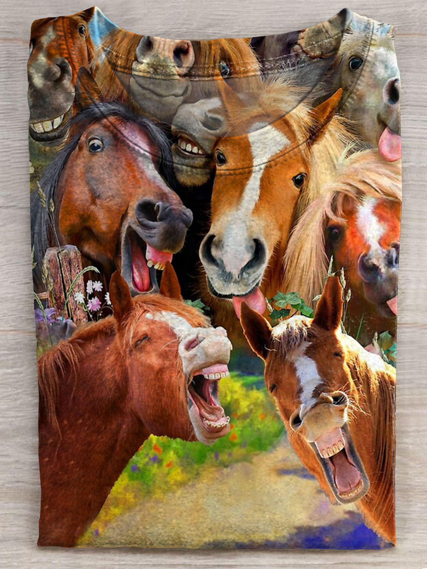 Funny Horse Art Print Casual Short Sleeve T-shirt