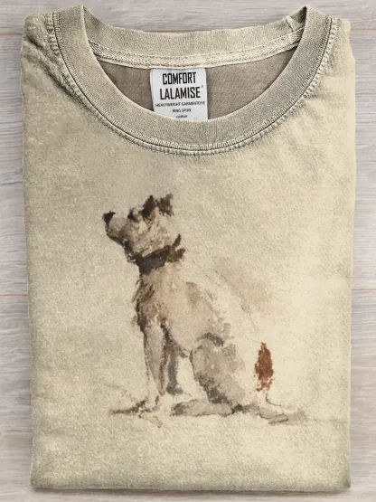 Funny Retro Cute Dog Background Art Print Casual Cotton Short Sleeve T-shirt
