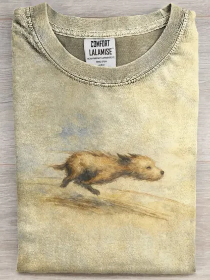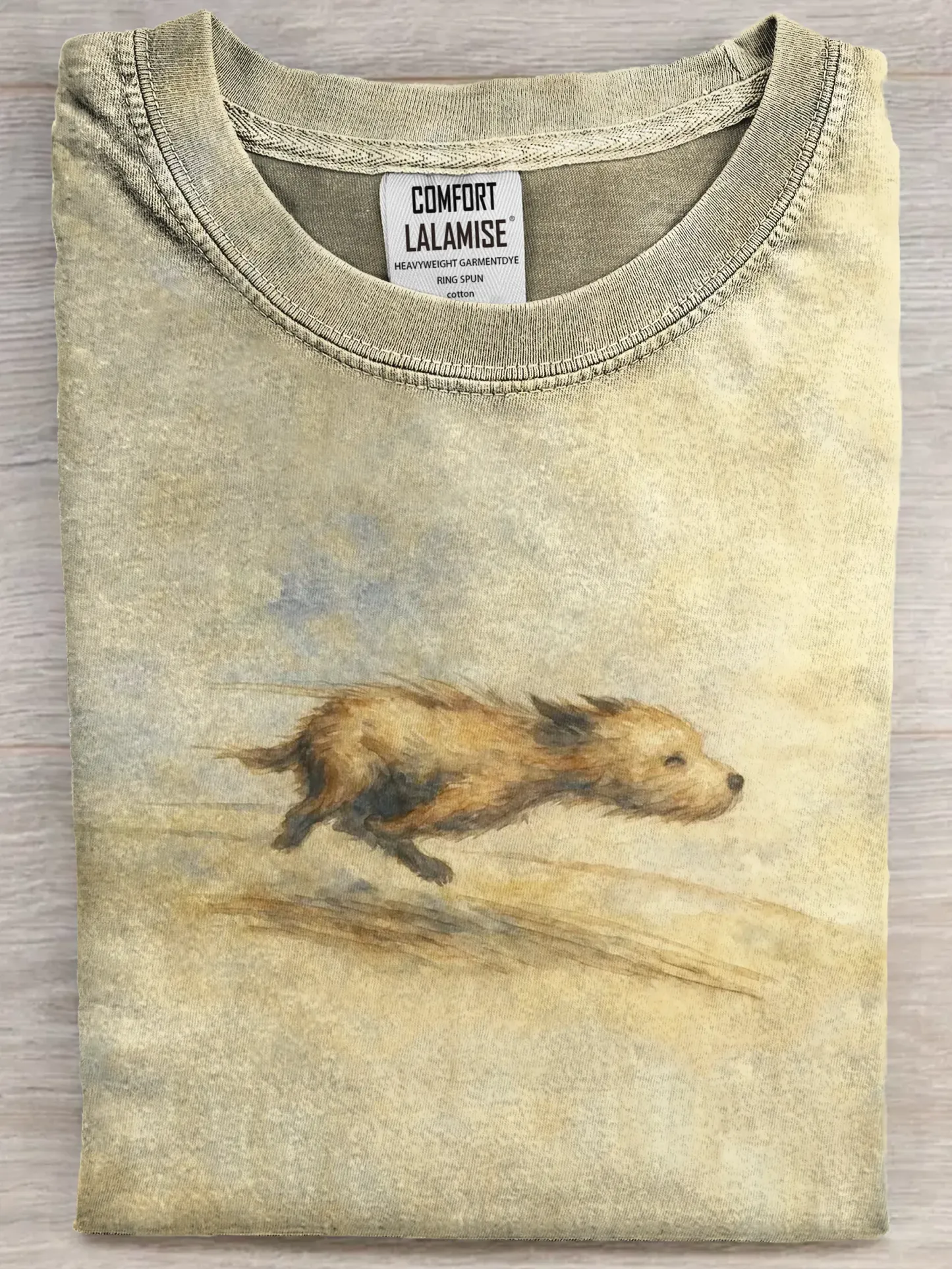 Funny Retro Cute Running Dog Art Print Casual Cotton Short Sleeve T-shirt
