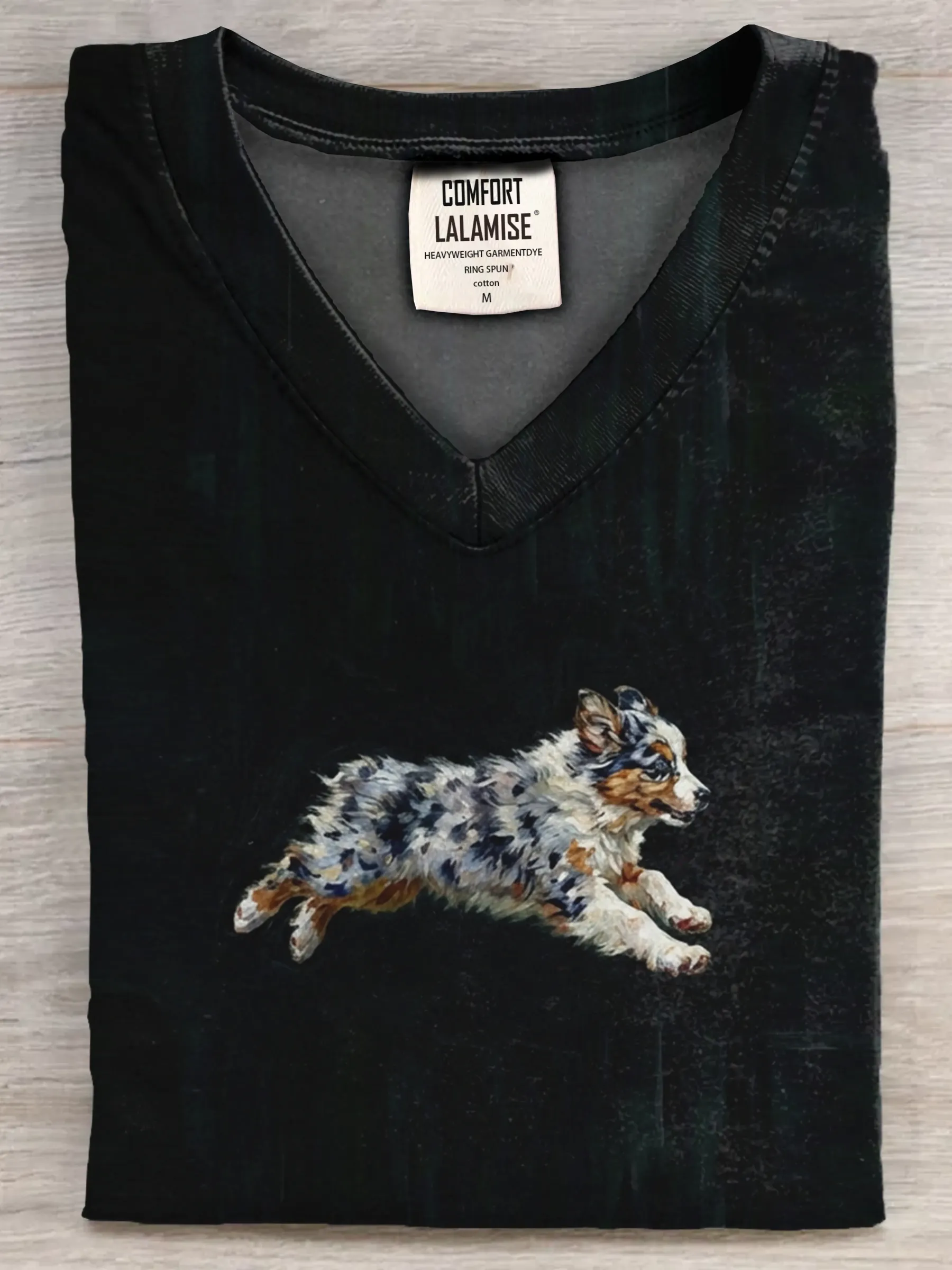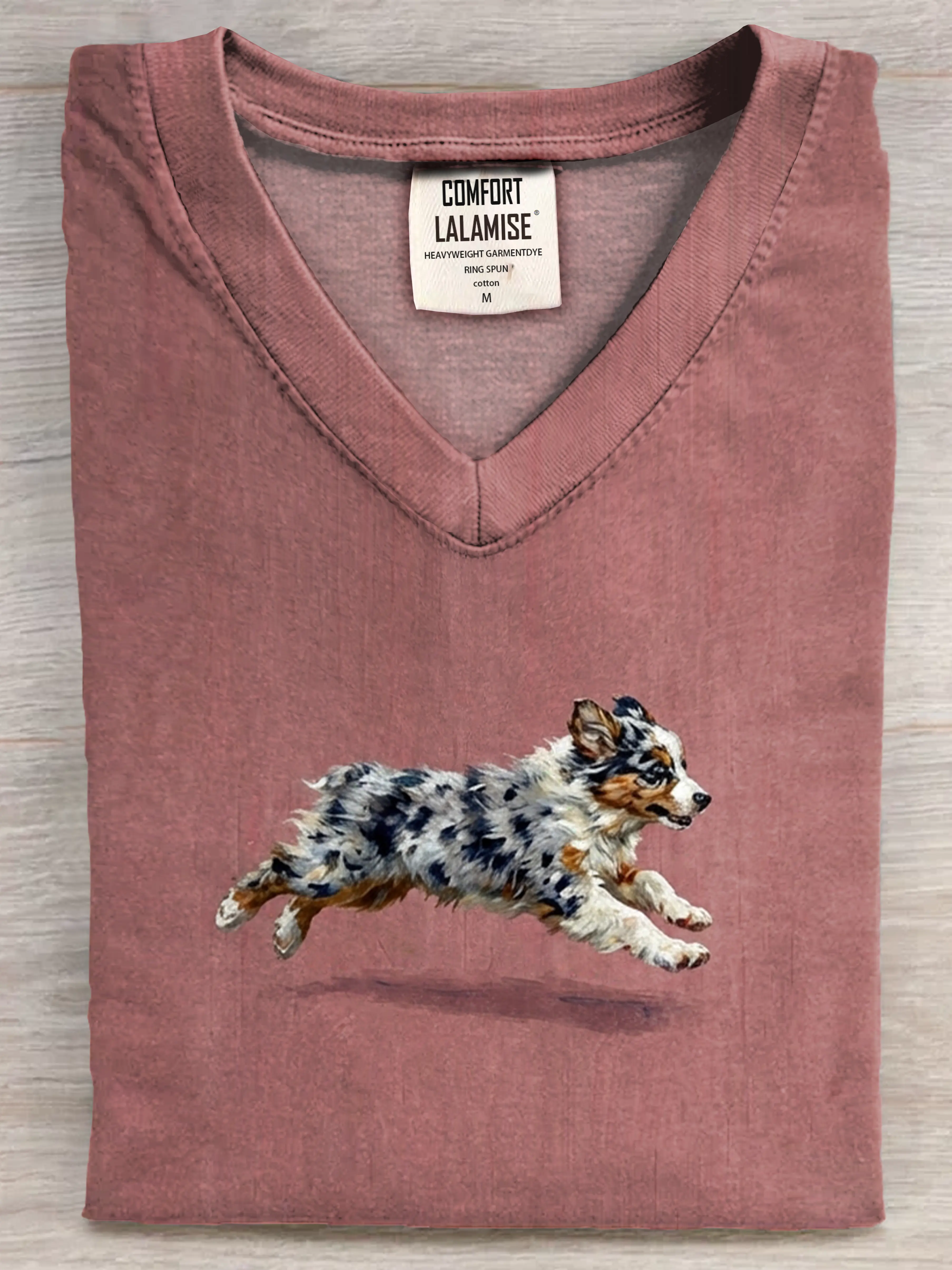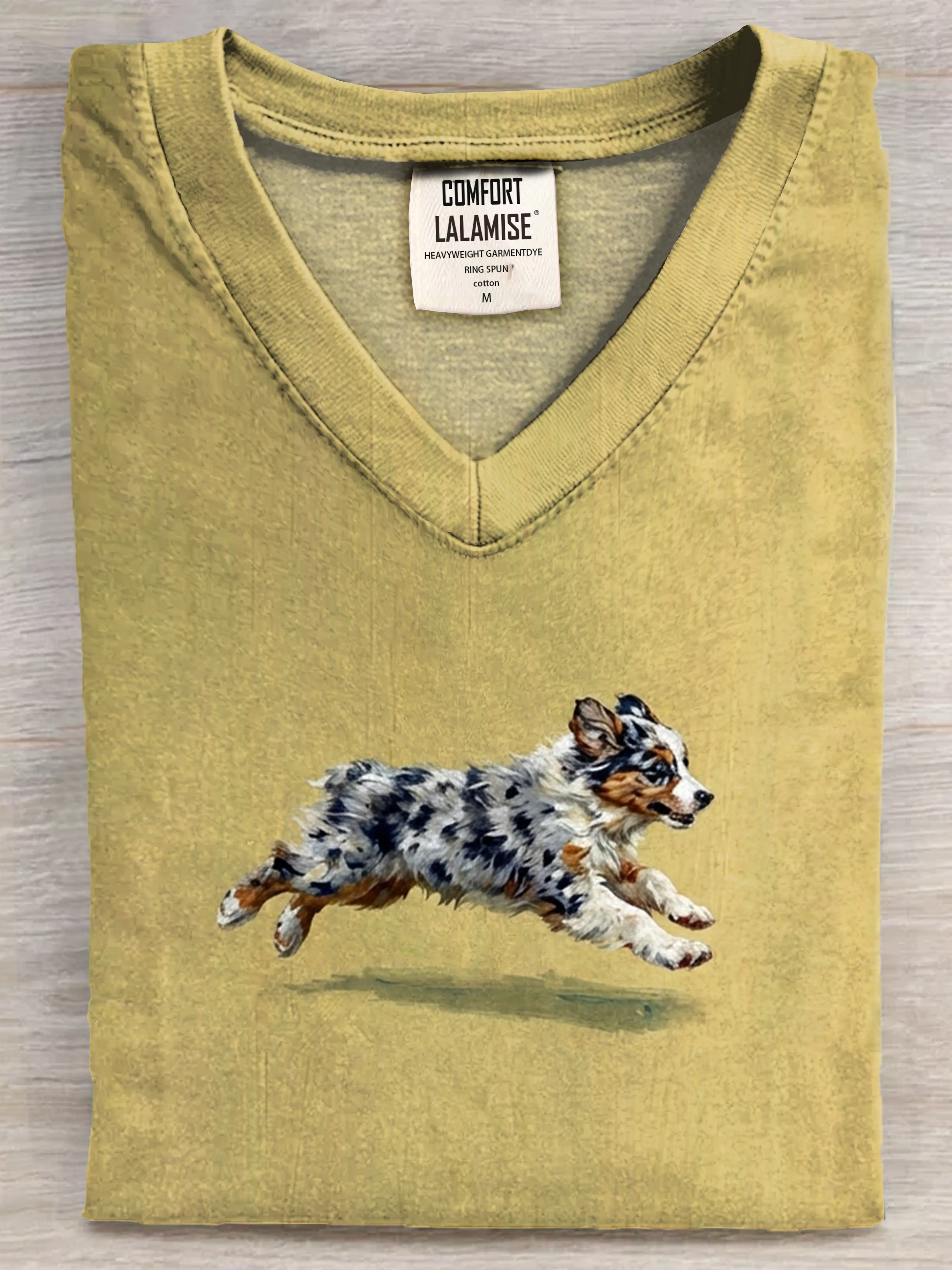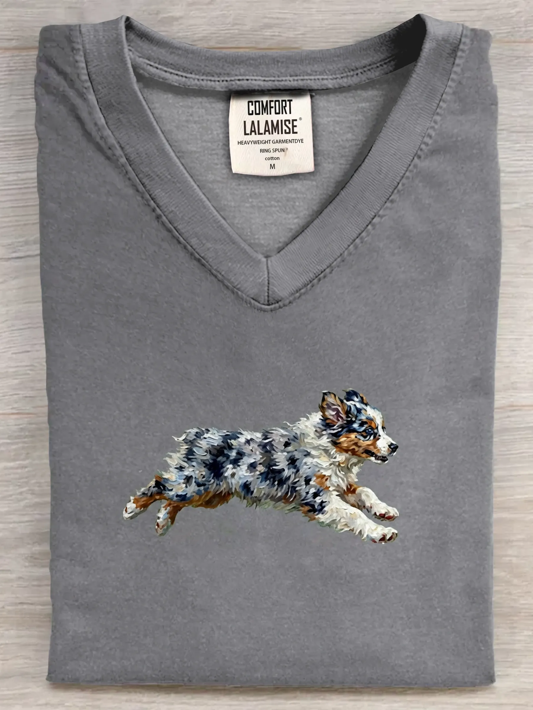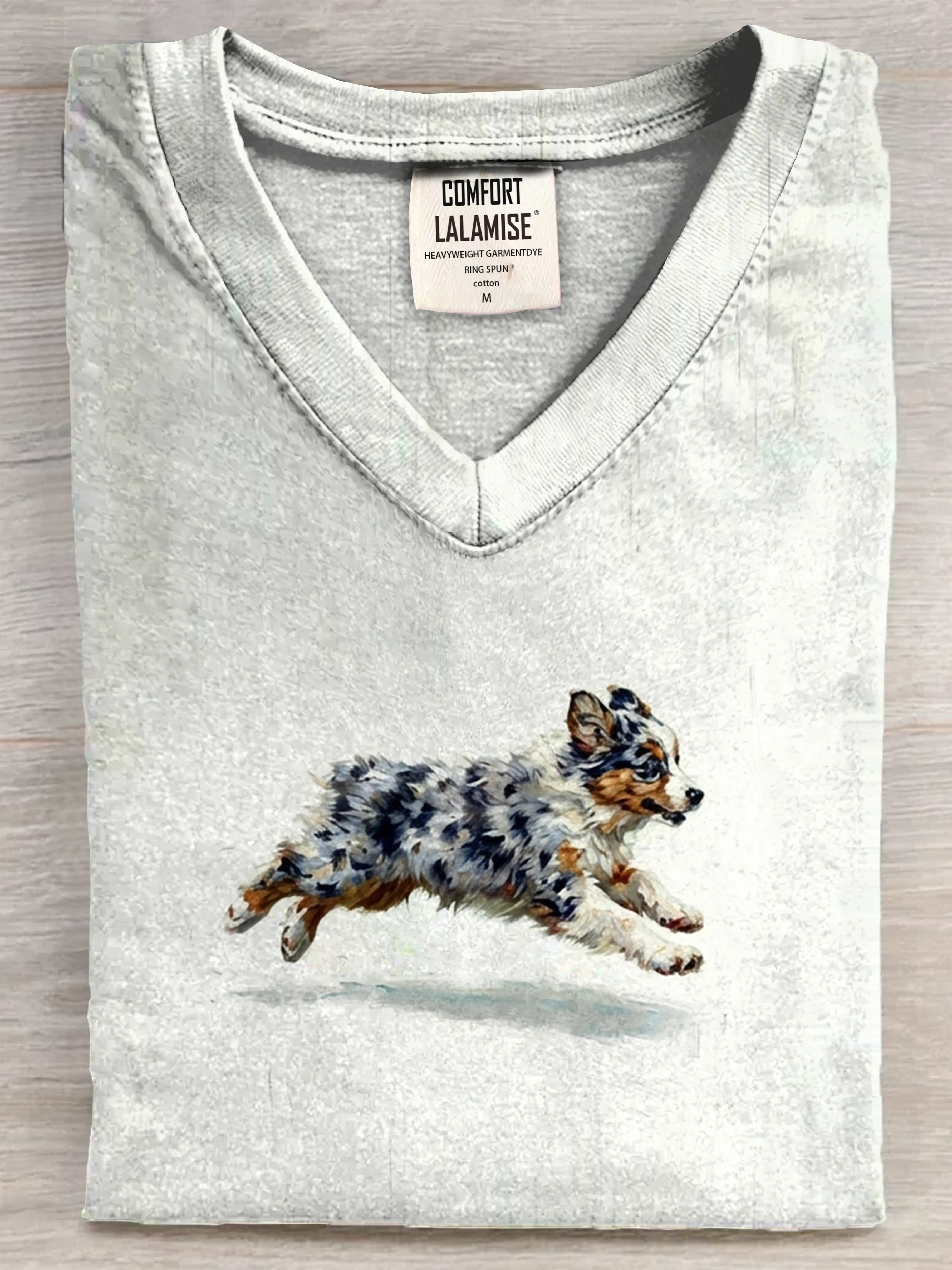 Funny Retro Cute Running Dog Art Print V-neck Casual T-shirt – lolonb