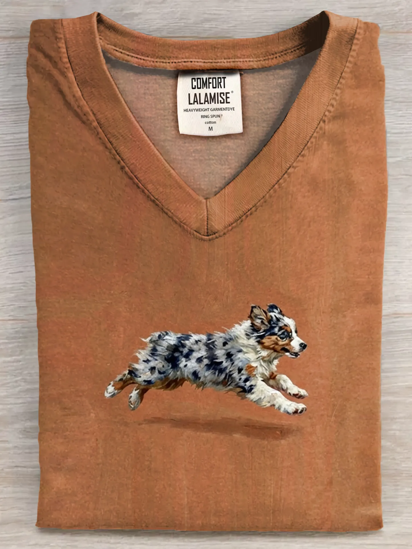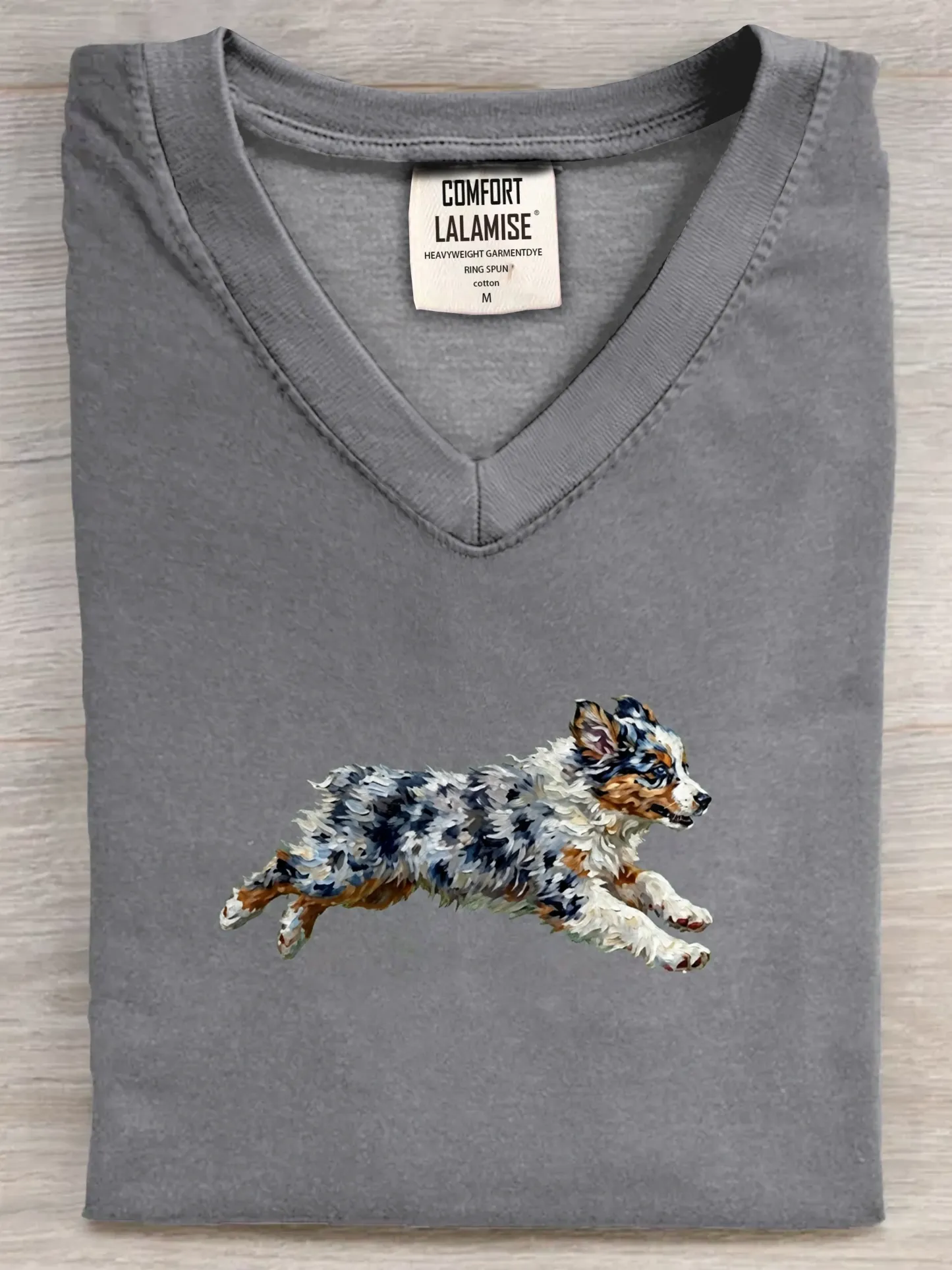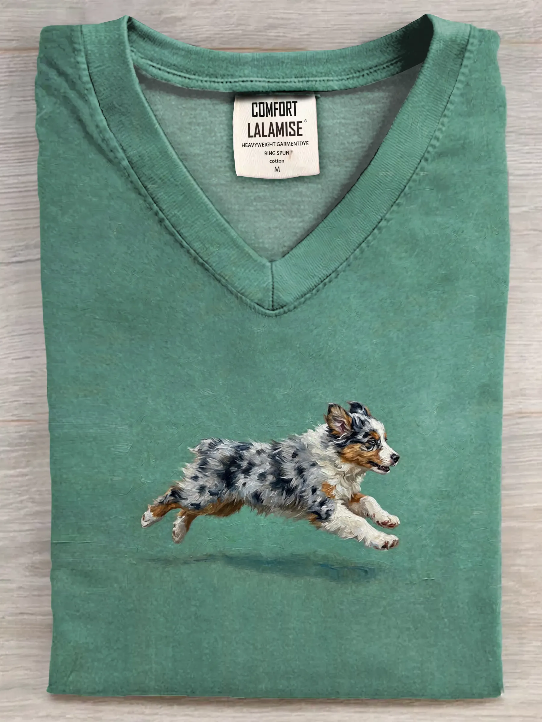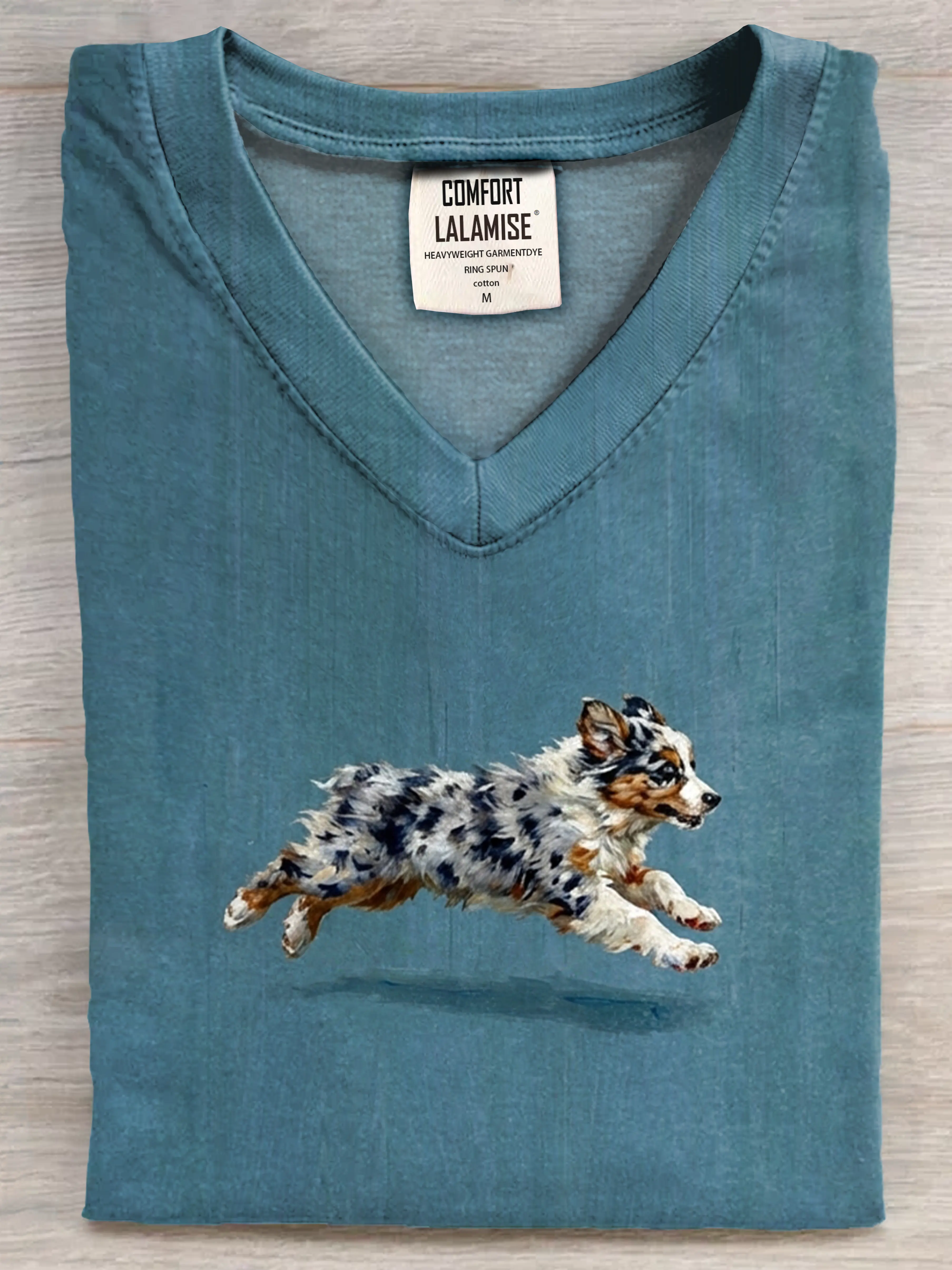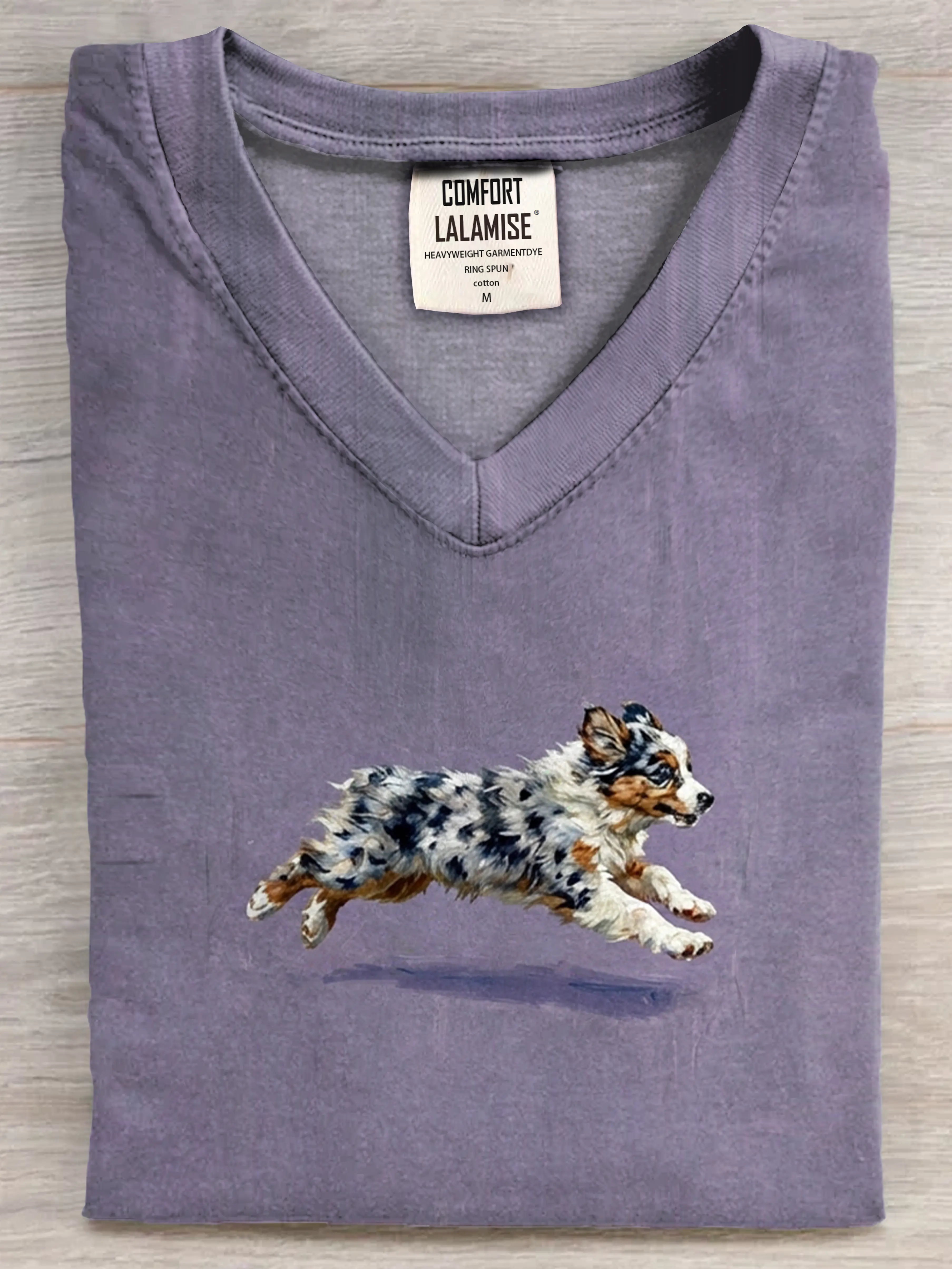 Funny Retro Cute Running Dog Art Print V-neck Casual T-shirt – lolonb