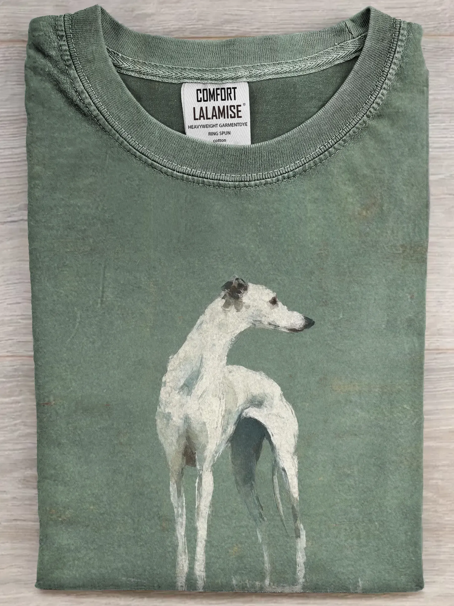 Funny Retro Elegant Hound Dog Art Print Casual Cotton Short Sleeve T-shirt