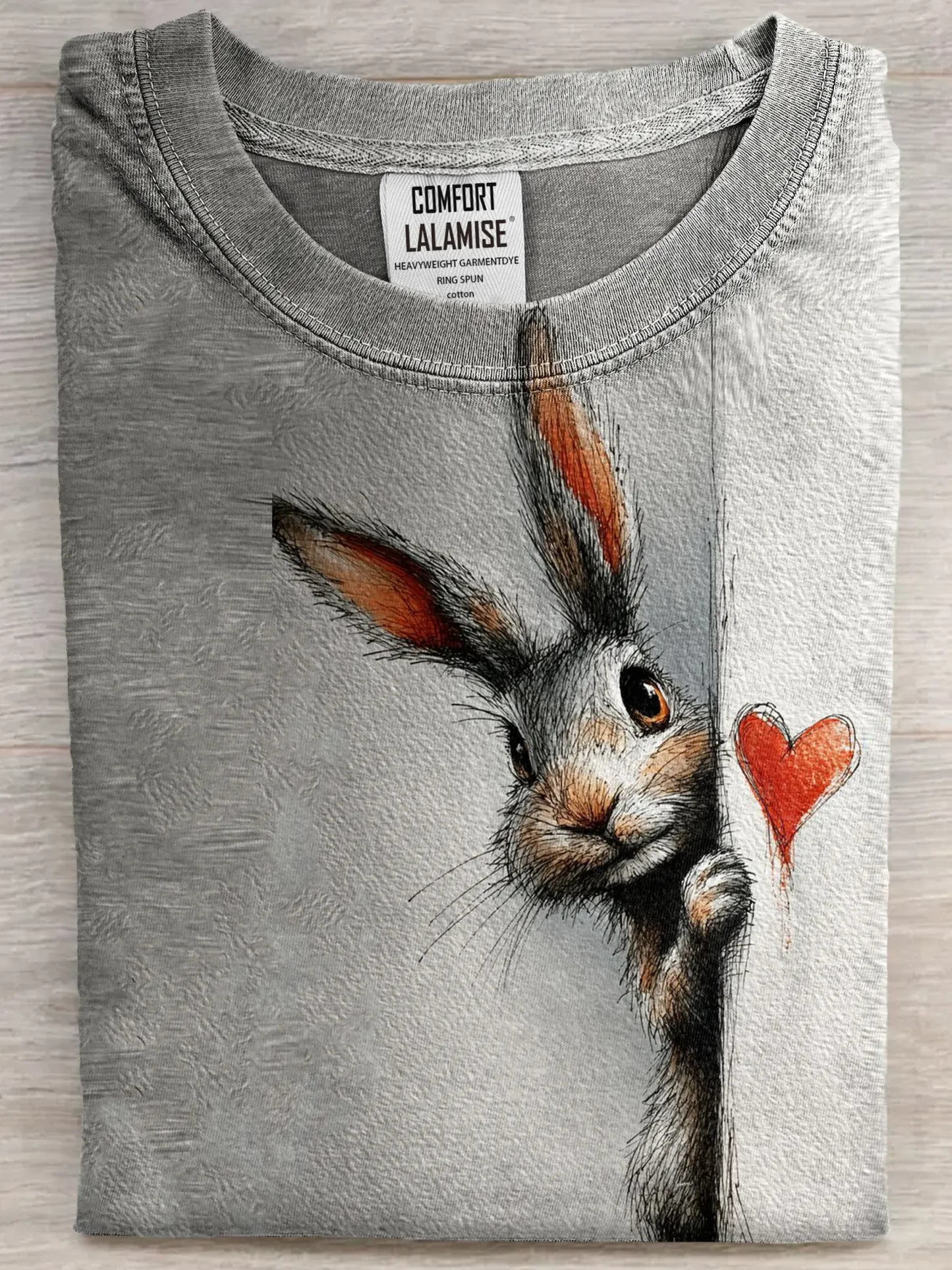 Funny Retro Love Rabbit Art Print Casual Cotton Short Sleeve T-shirt