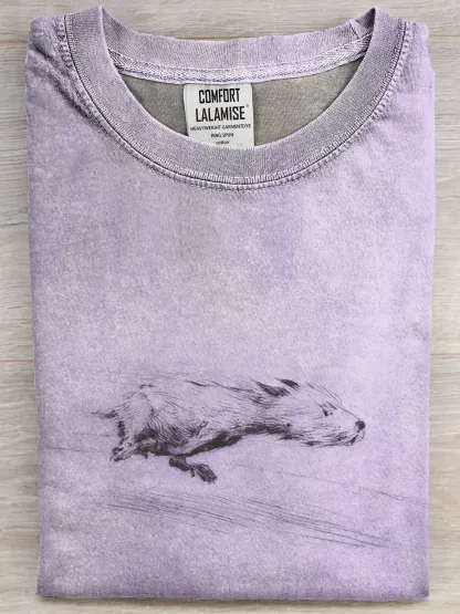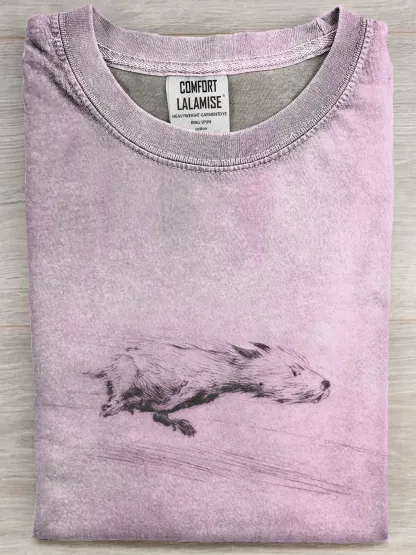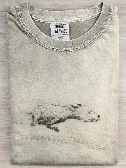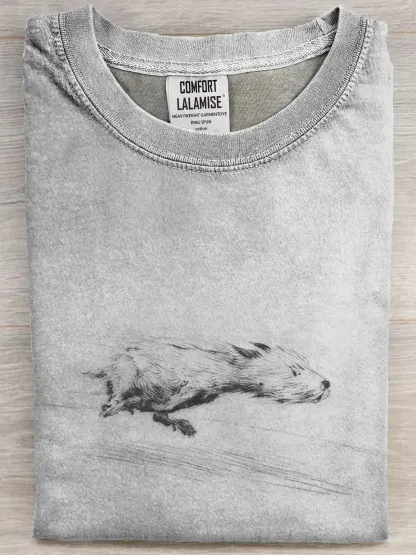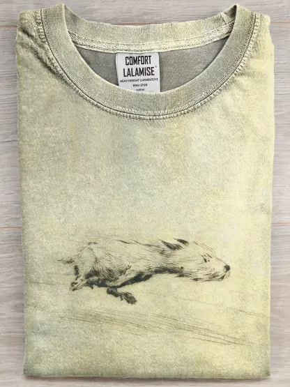 Funny Retro Running Dog Art Print Casual Cotton Short Sleeve T-shirt
