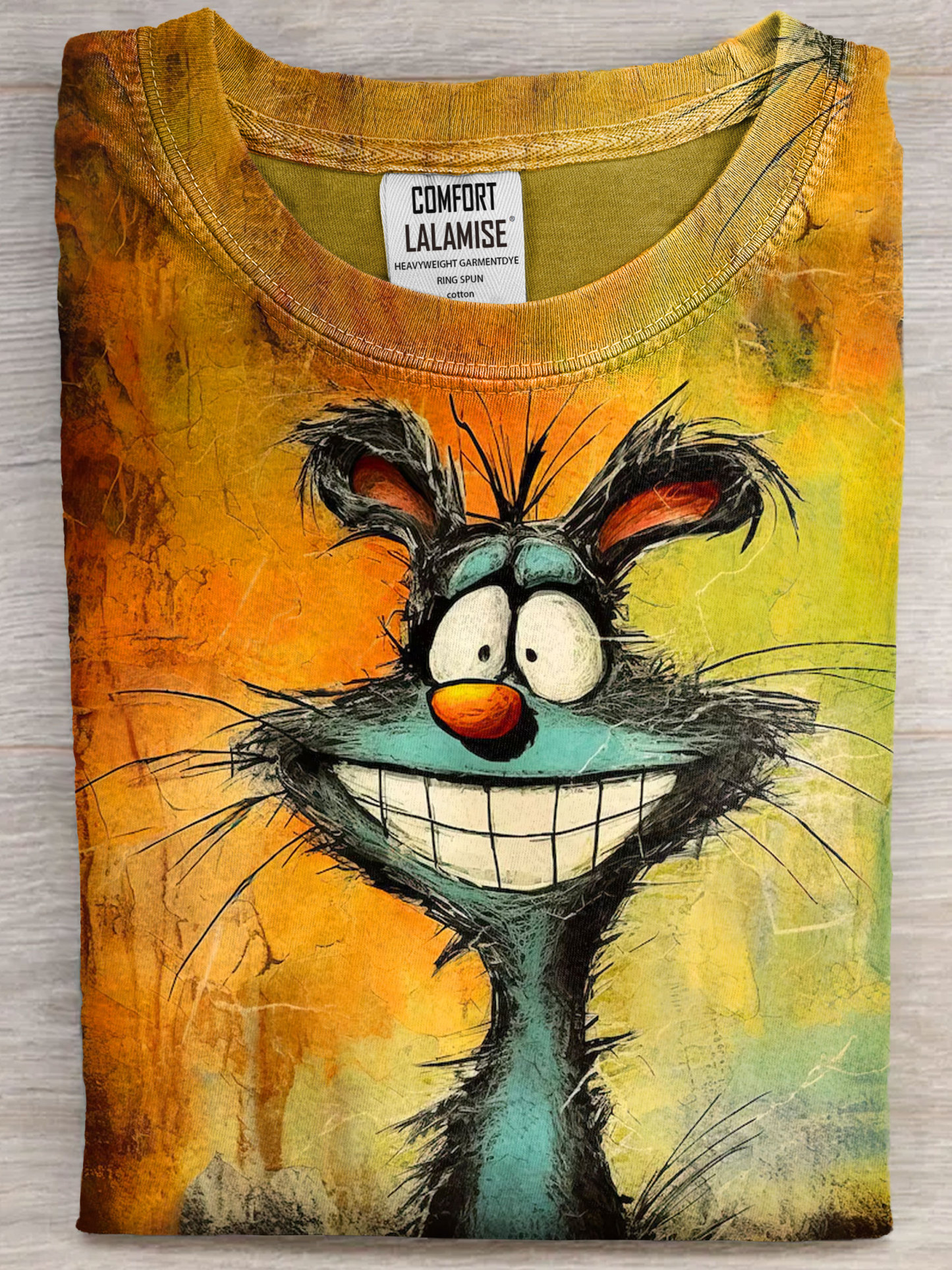 Funny Silly Dog Smiling Art Print Casual Short Sleeve T-shirt