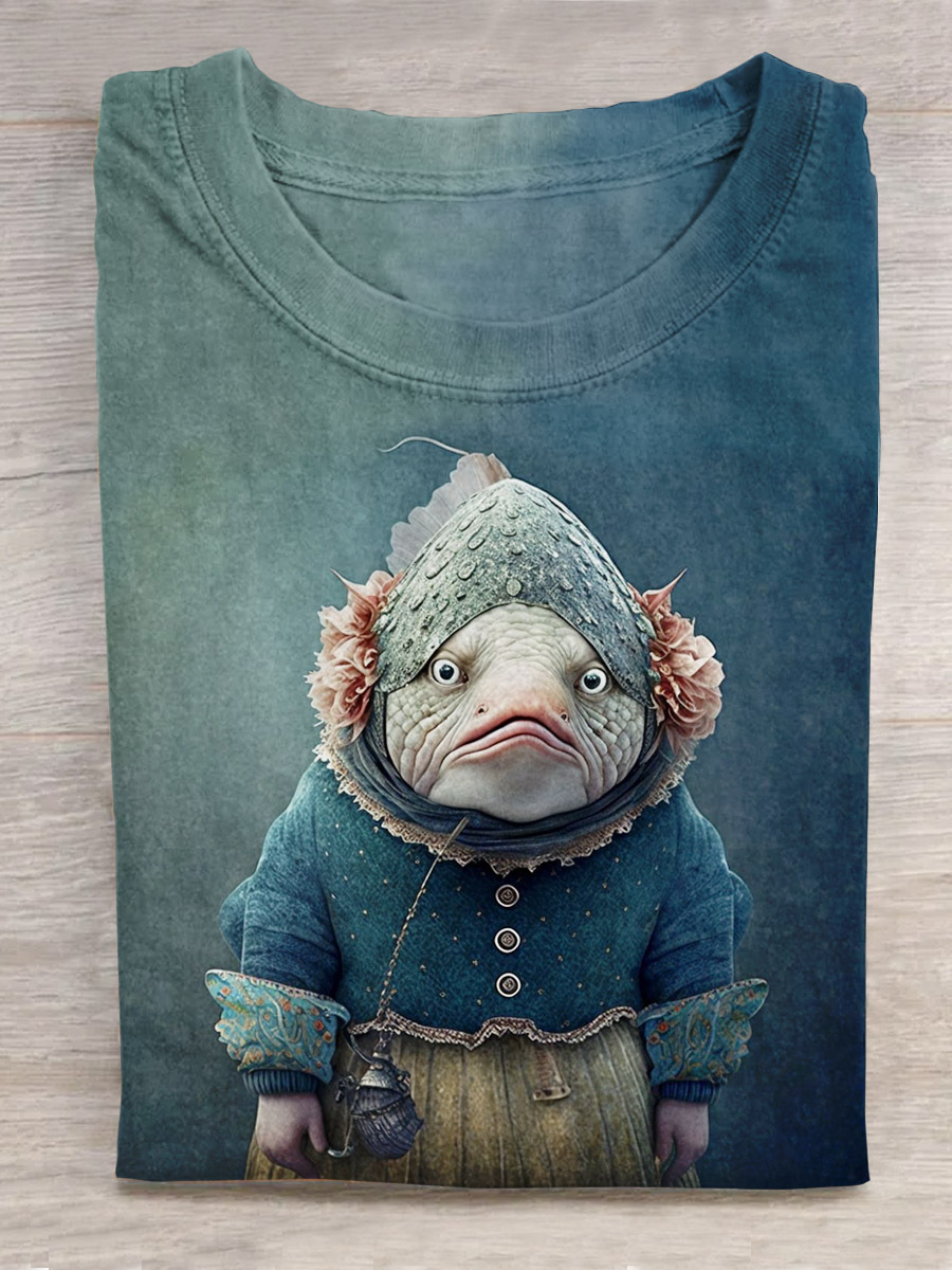 Funny Vintage Dress Fish Art Pattern Print Casual T-shirt