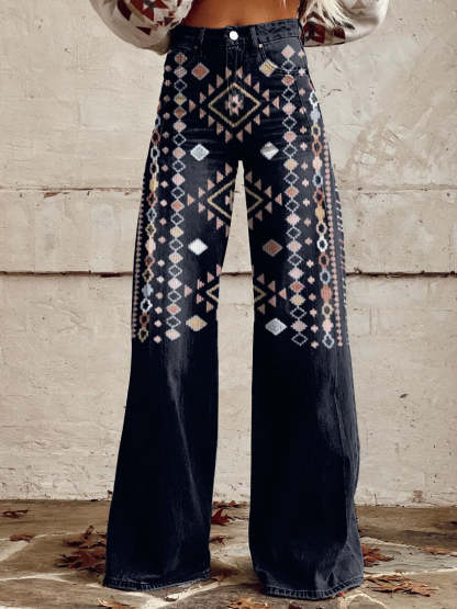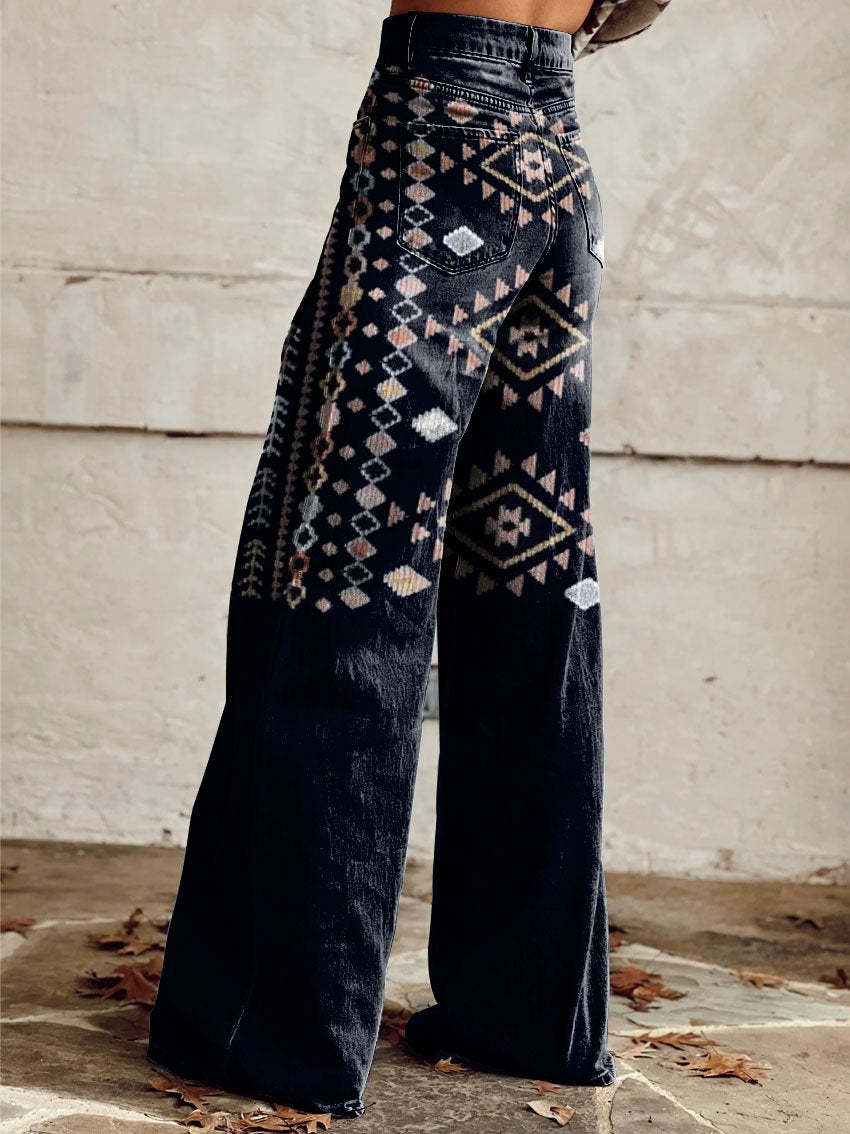 Geometric Decoration On Black Background Print Casual Wide Leg Pants