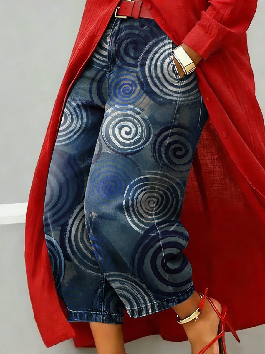 Geometric Line And Circle Decorative Pattern Women's Denim Pants
