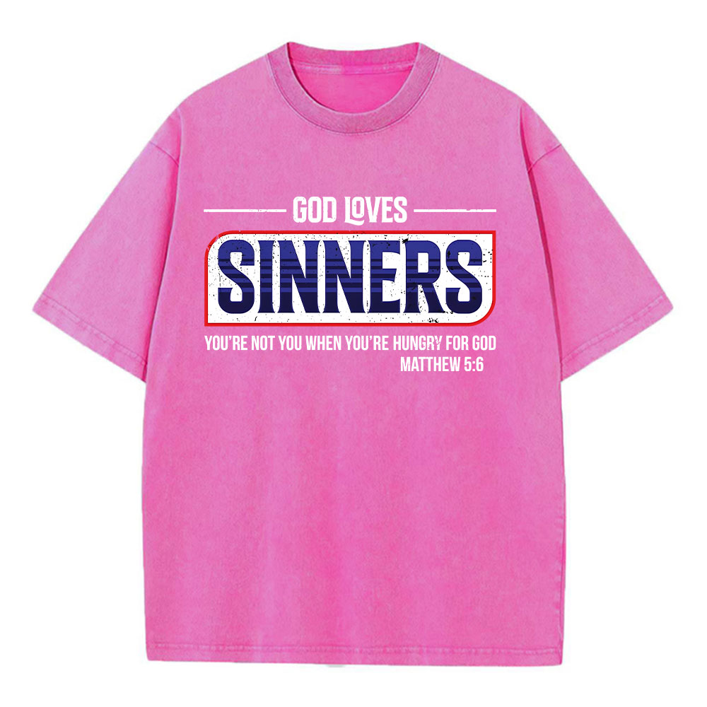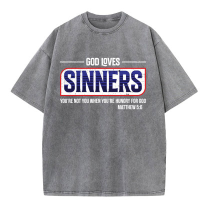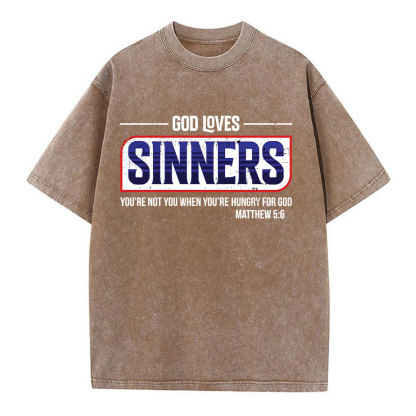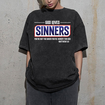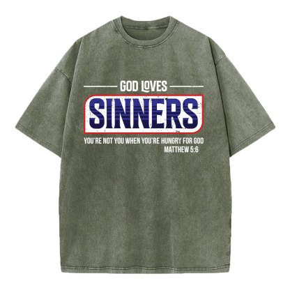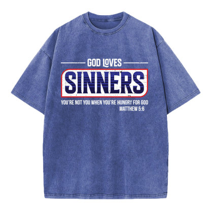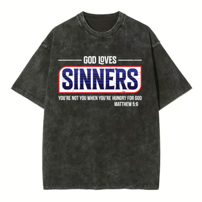 God Loves Sinners Christian Washed T-Shirt