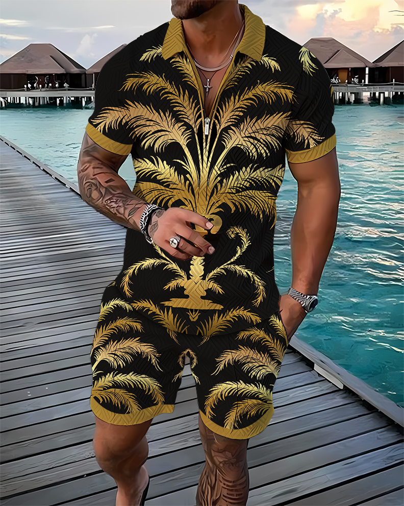 Golden Tropica Polo Shirt And Shorts Co-Ord