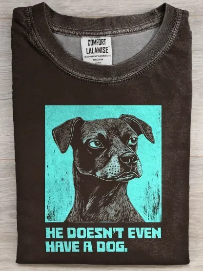 He Doesn't Even Have A Dog Funny Dog Lover Anti Trump Art Print Casual Cotton Short Sleeve T-shirt