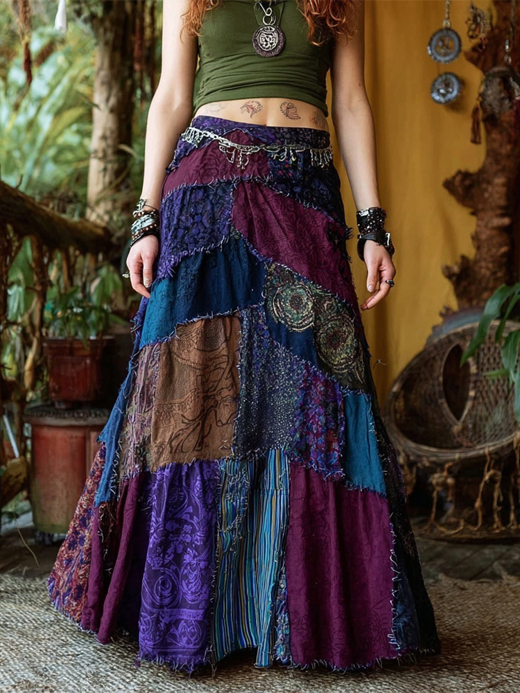 Hippie Bohemian Inspired Patchwork Cozy Linen Skirt – lolonb