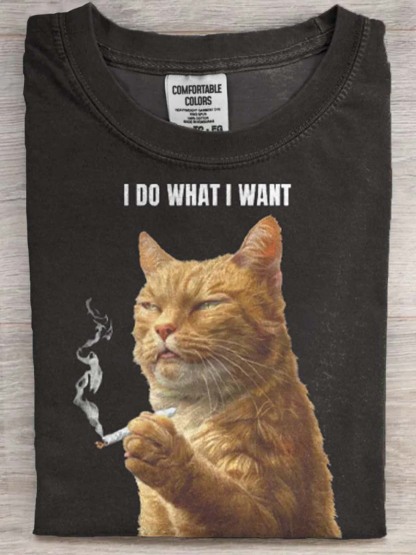 I Do What I Want Cat Print Casual Short Sleeve T-Shirt