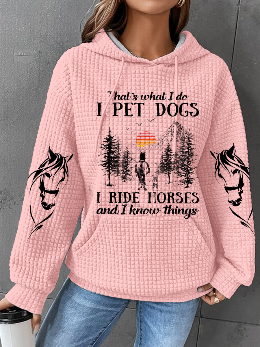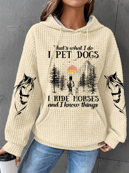 I Pet Dogs I Ride Horses Print Waffle Hoodie