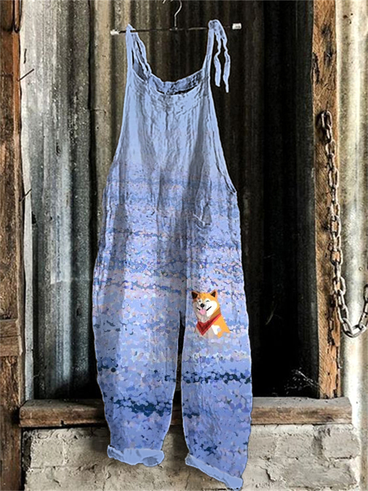 Japanese Art Flower And Dog Print Jumpsuit