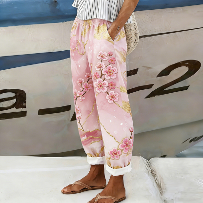 Japanese Cherry Blossom Abstract Marble Art Comfy Pants