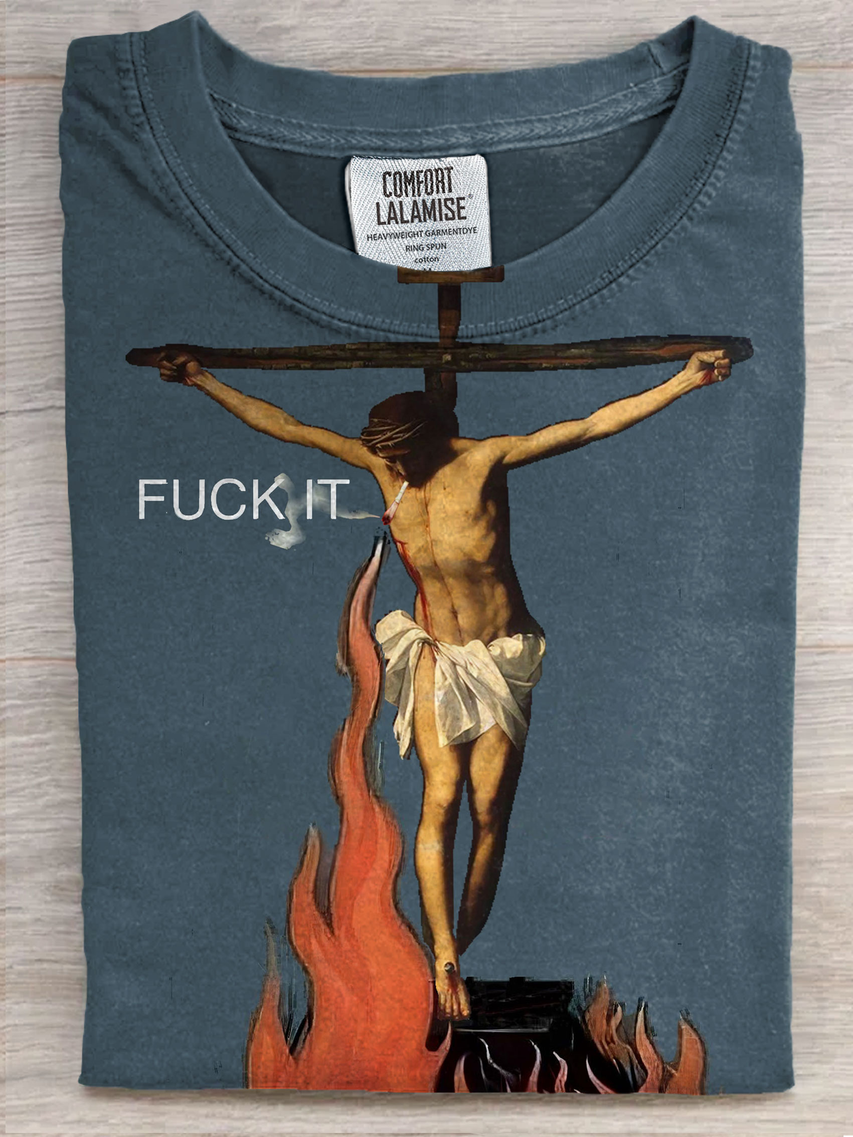 Jesus Fuck It Art Print Casual Short Sleeve T-shirt