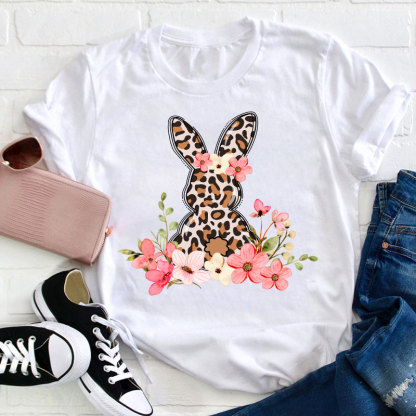 Leopard Floral Bunny Teacher T-Shirt – lolonb