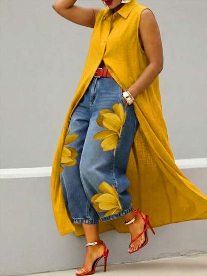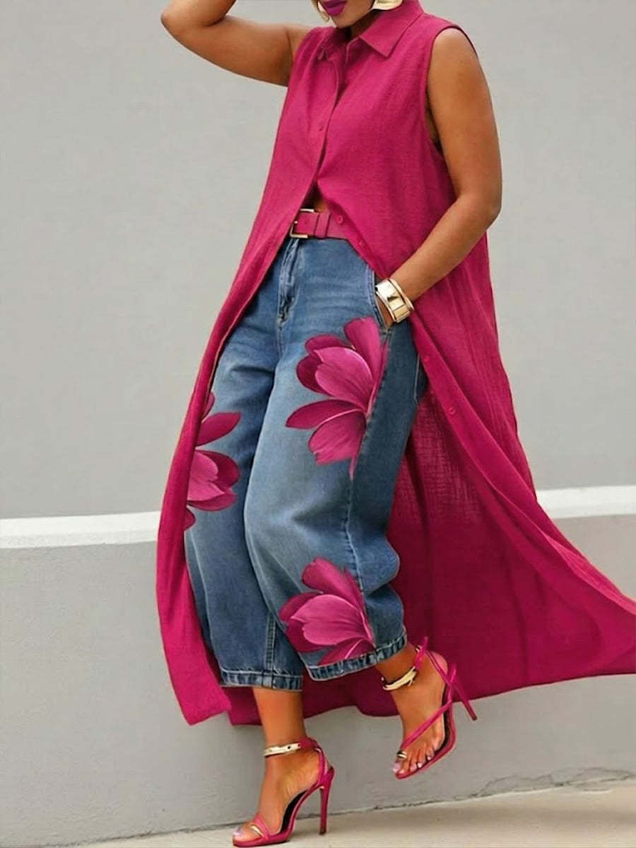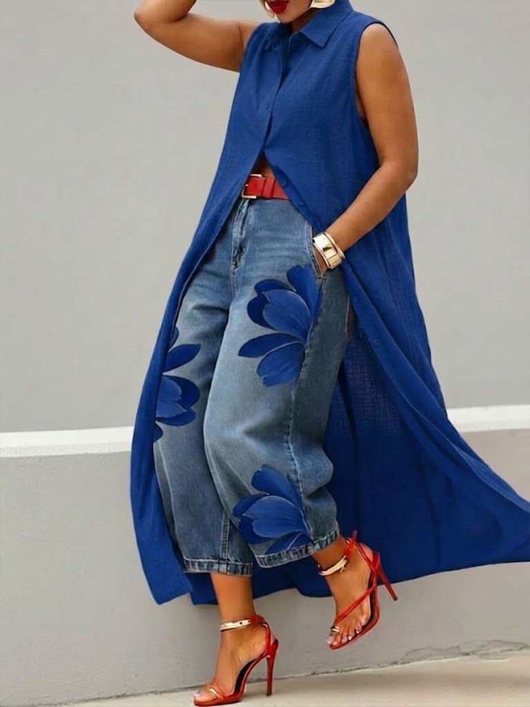 Loose-fit, Casual, Sleeveless Linen And Cotton Shirt Dress