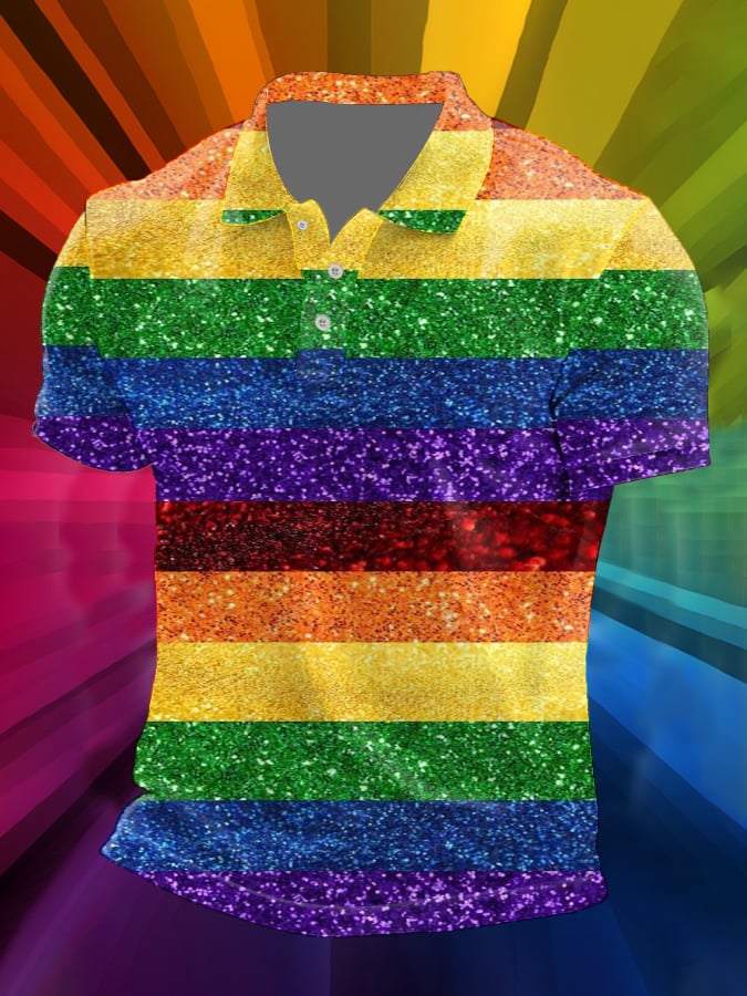 Man's Rainbow Stripe Printed POLO Shirt