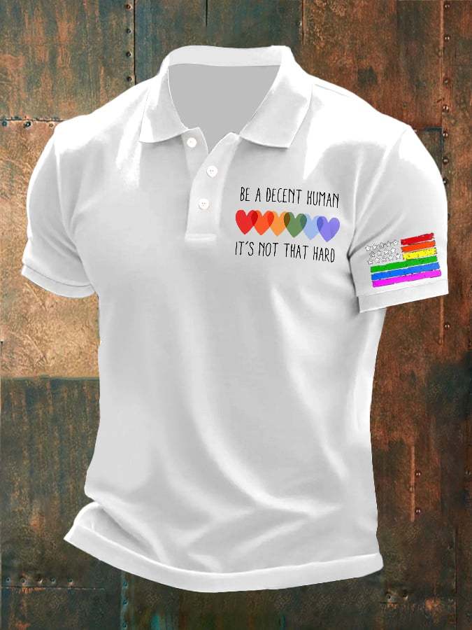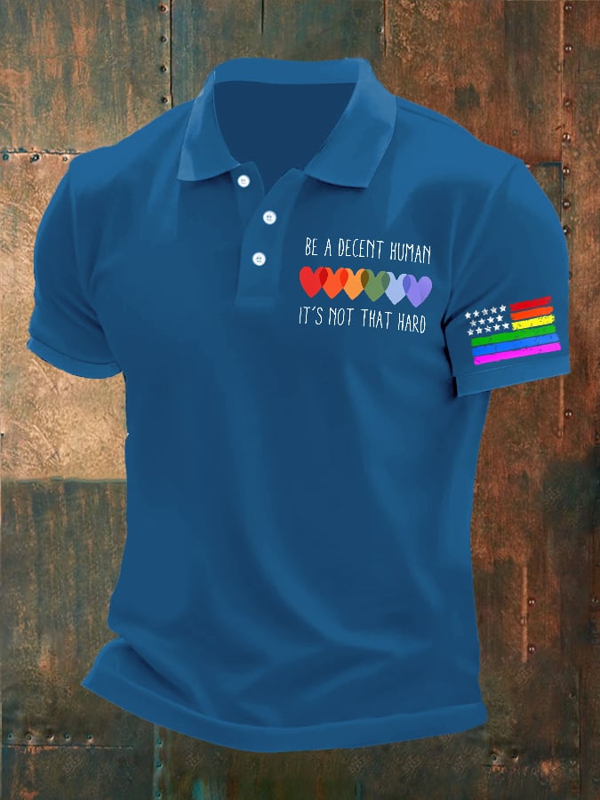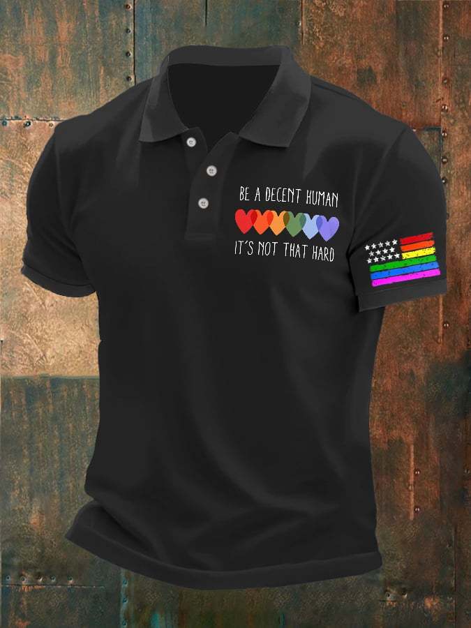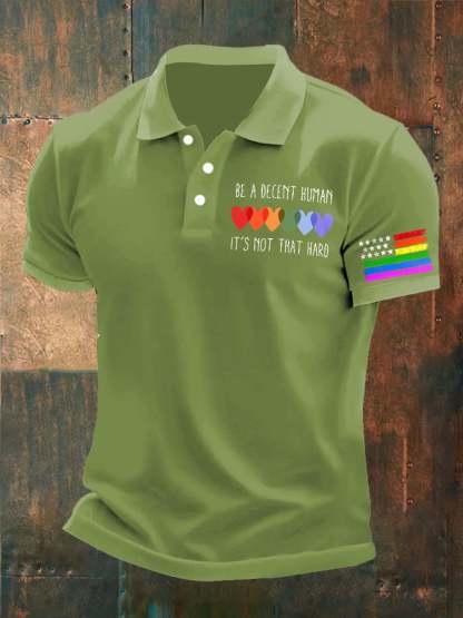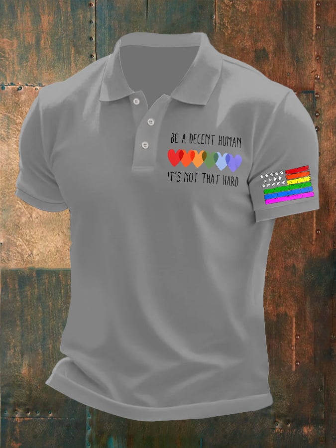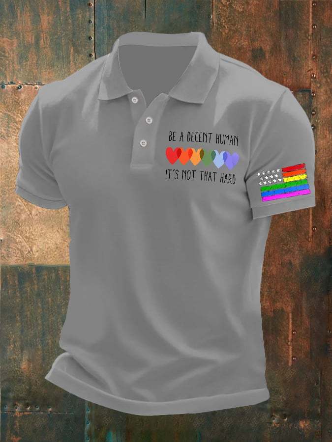 Man's Vintage Be A Decent Human It's Not That Hard Printed Polo Shirt