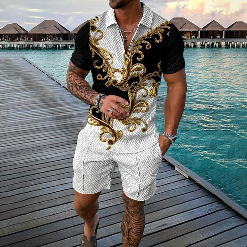 Men's Casual Printed Short-sleeved Polo Set