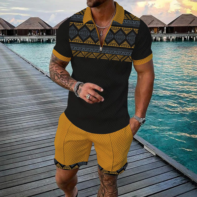 Men's Golden Mirage Print Casual Short-sleeved Polo Set